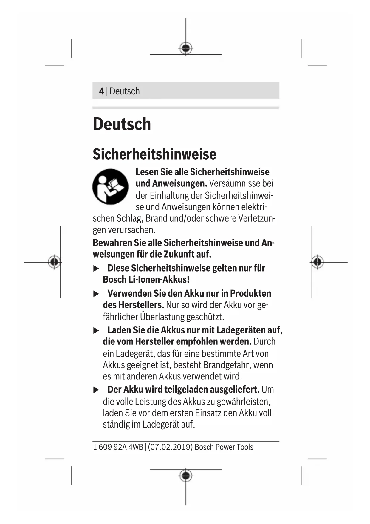 Finden Sie kostenlos die Bedienungsanleitung des Geräts GBA 12V BOSCH als PDF.