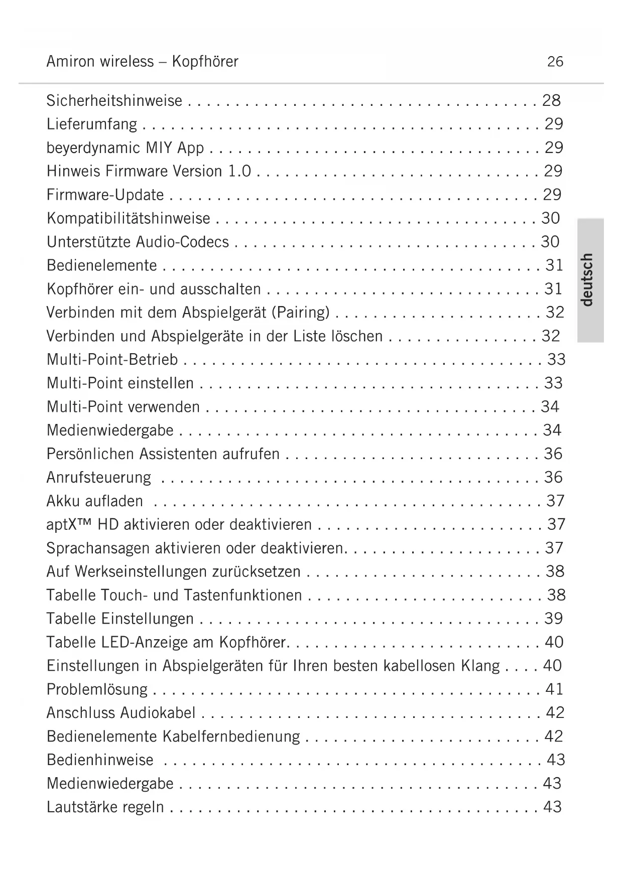 - Lautstärke regeln deutsch Amiron wireless – Kopfhörer p. 43