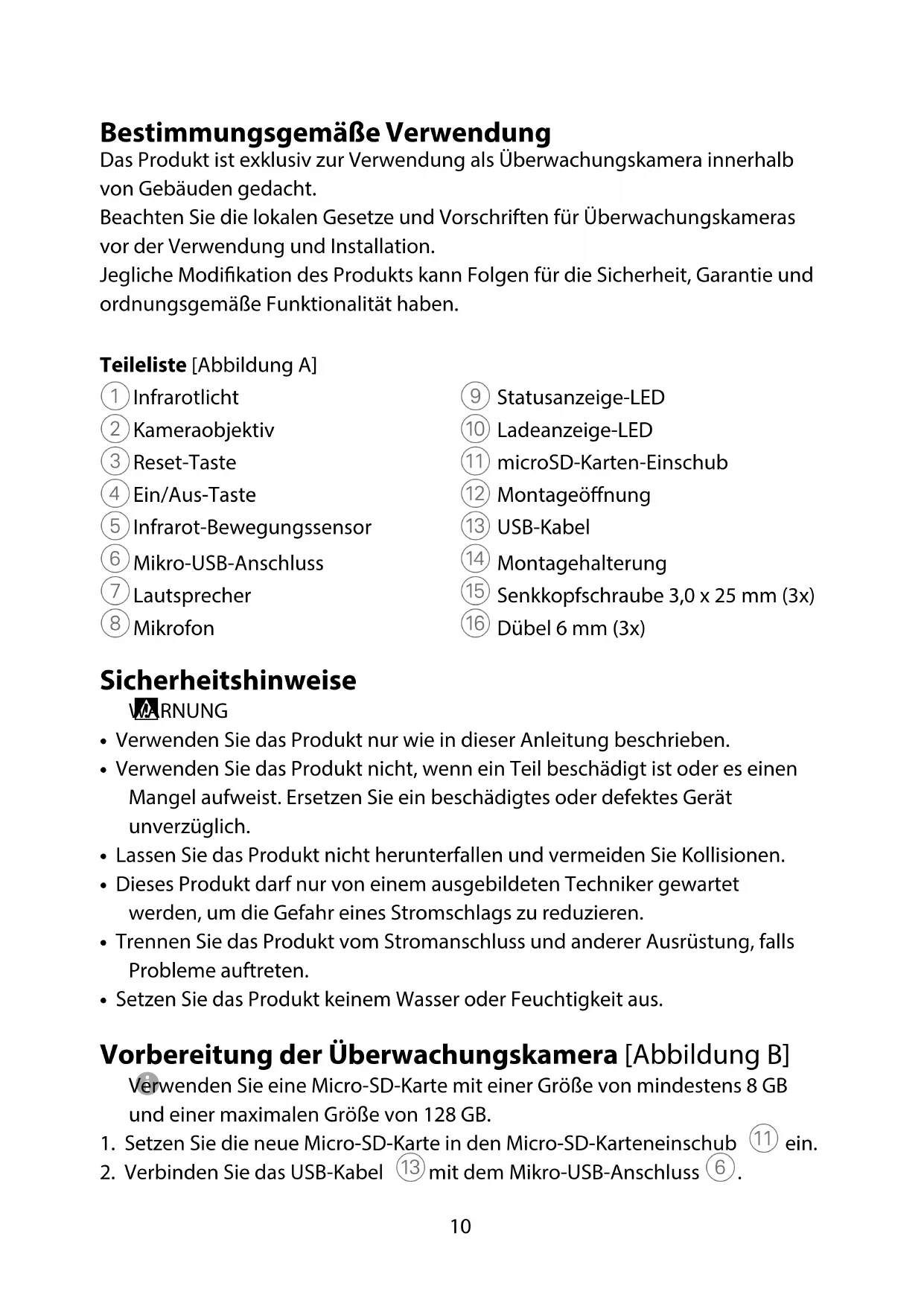 - Setzen Sie das Produkt keinem Wasser oder Feuchtigkeit aus. Vorbereitung der Überwachungskamera [Abbildung B]