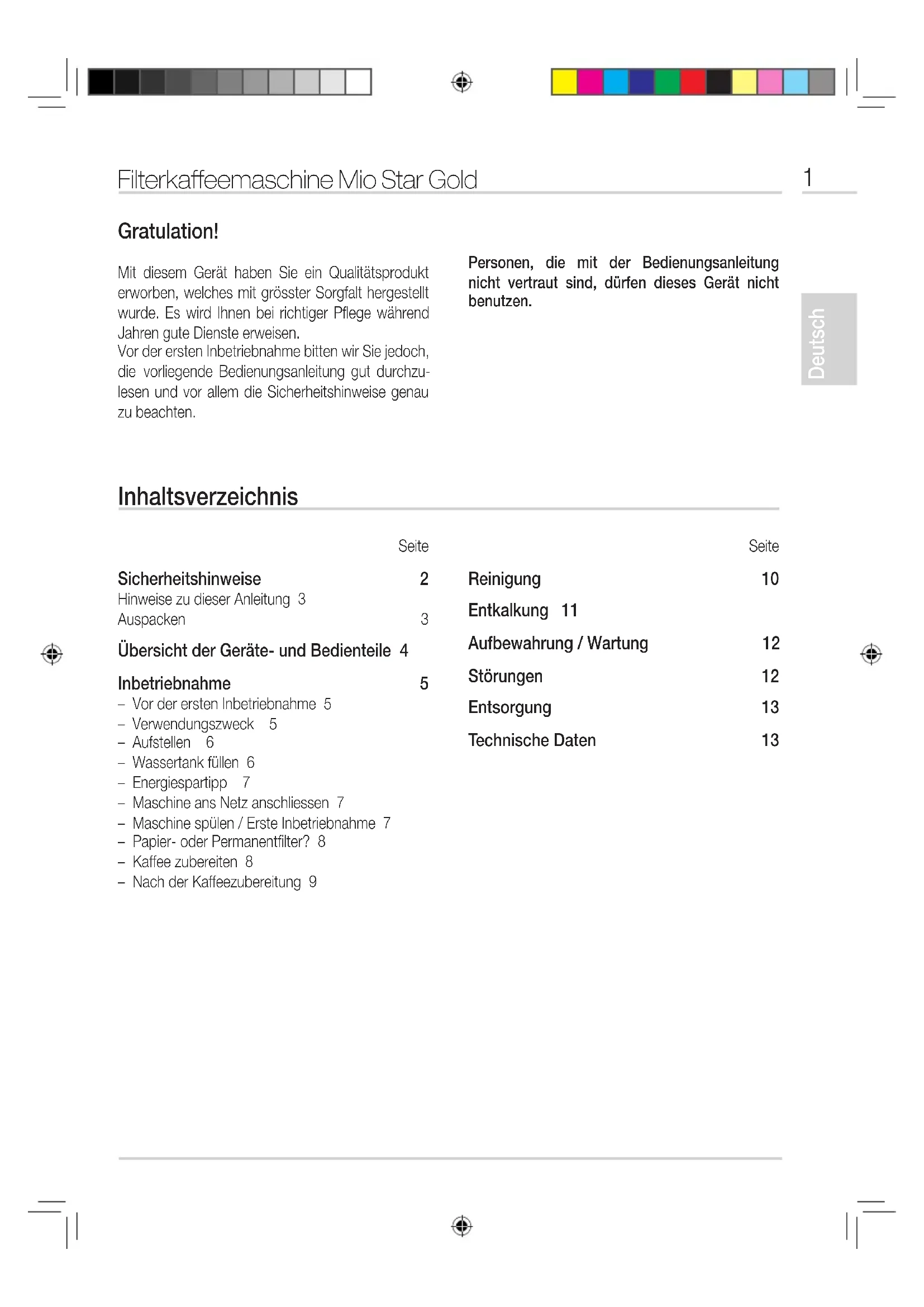 Bedienungsanleitung Seite 1