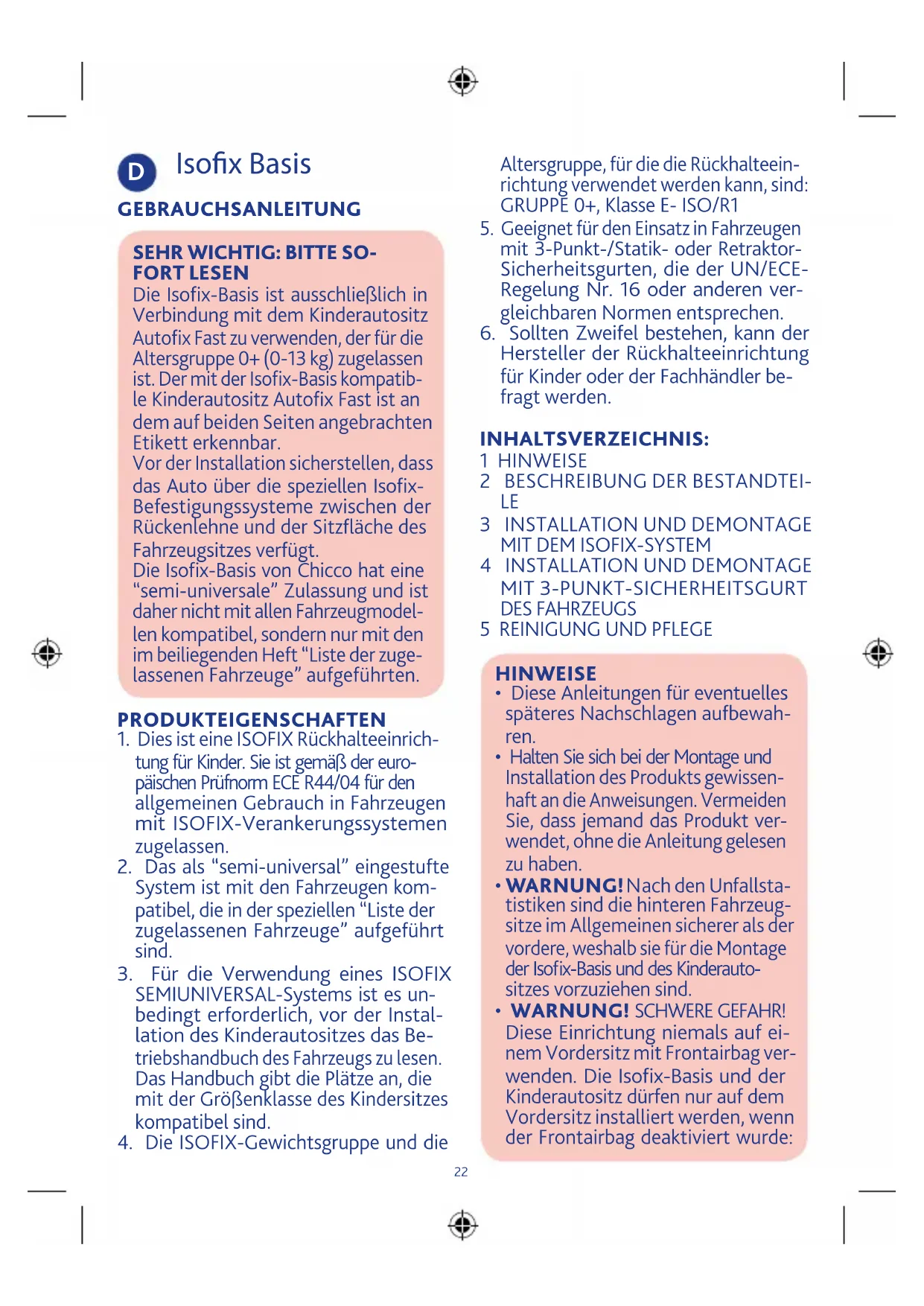 4. Die ISOFIX-Gewichtsgruppe und die22