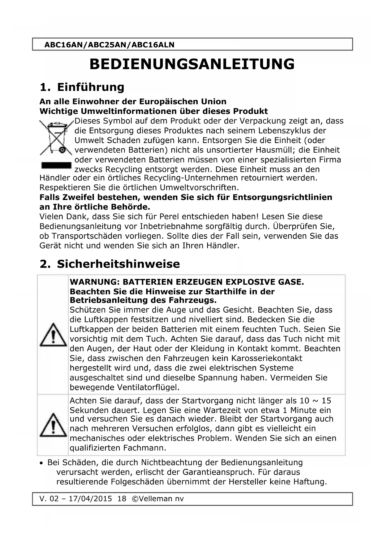 Siehe Velleman® Service- und Qualitätsgarantie am Ende dieser Bedienungsanleitung.