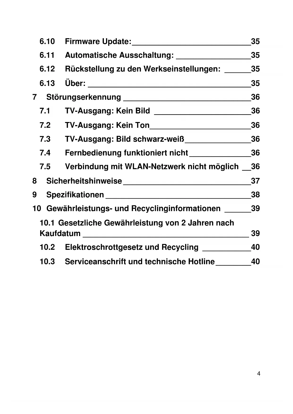 10.1 Gesetzliche Gewährleistung von 2 Jahren nach Kaufdatum 39