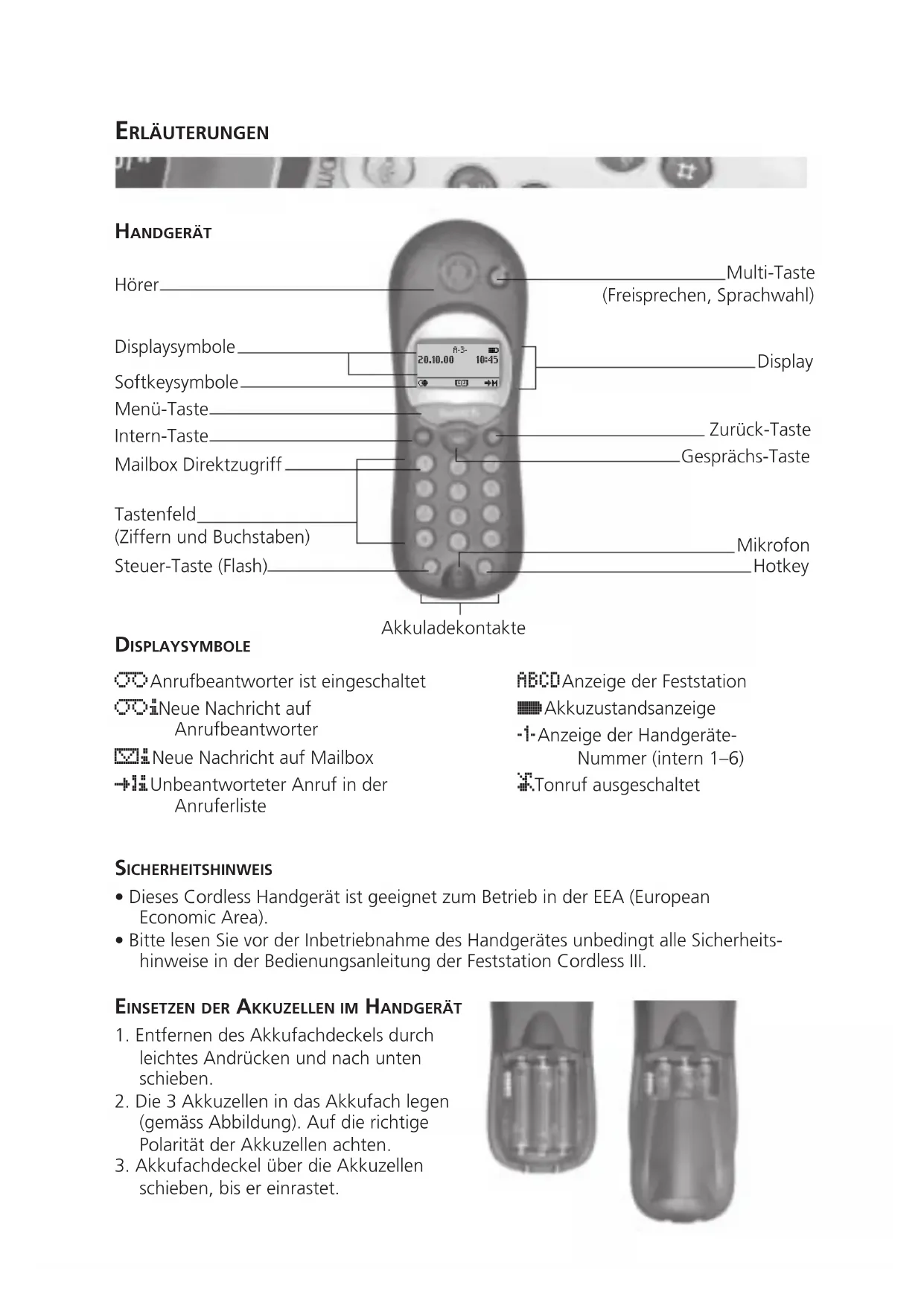 - Bitte lesen Sie vor der Inbetriebnahme des Handgerätes unbedingt alle Sicherheits- hinweise in der Bedienungsanleitung der Feststation Cordless III.