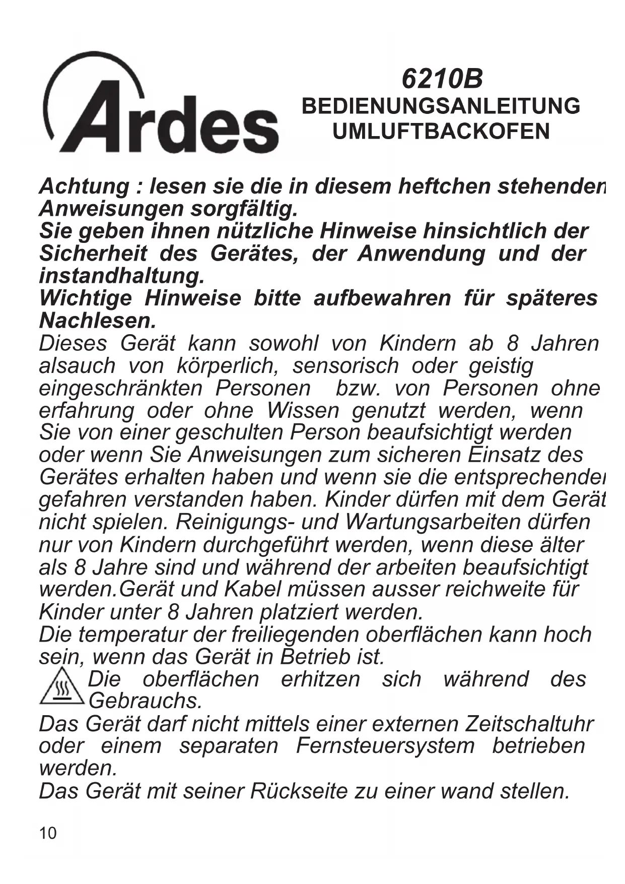 BEDIENUNGSANLEITUNG Gustavo AR6210B ARDES