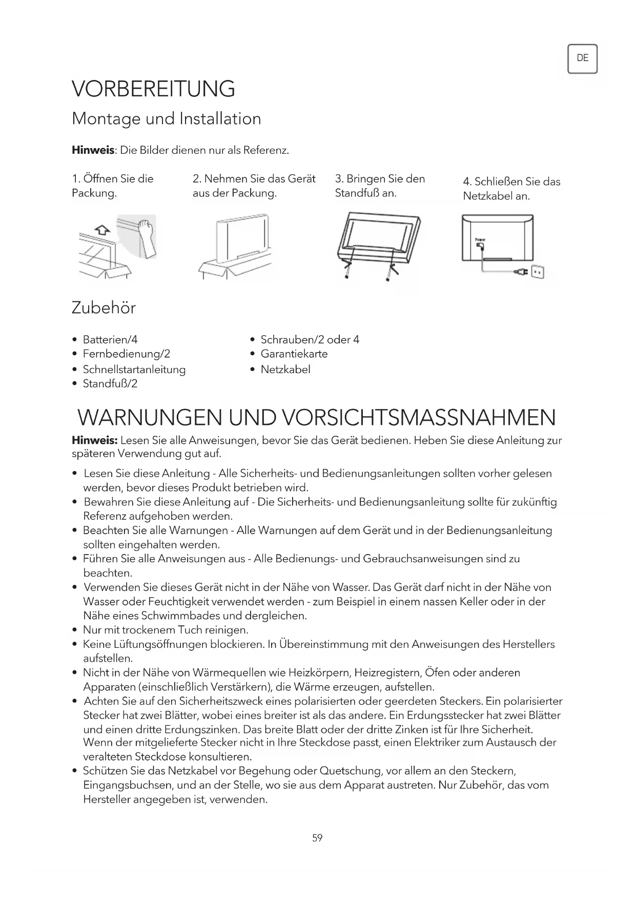 VORBEREITUNG Montage und Installation Zubehör Hinweis: Die Bilder dienen nur als Referenz.