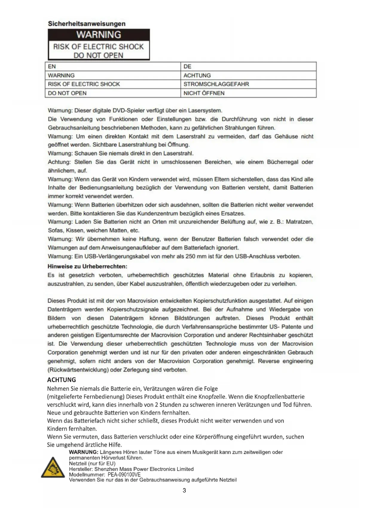 35Diese Funktion ermöglicht das abspielen von CD/VCD 3637Diese Pogramfunktion ermöglicht das abspielen von songs/film tracks in eine reihe folge. 3839Last Memory ON ON OFF Das Bild wird links und rechts abgeschnien. 4:3 PANSCAN: 40Wenn diese Funk on ak vier st, dann wird die Wiedergabe der DVD an der Posi on fortgesetzt, an der das Gerät gestoppt oder ausgeschaltet bzw. die DVD gewechselt wurde. 4142Standard Einstellungen 43Lithium Ausgang: 7,4V 1000mAh Betriebszeit ca 2.5 Stunden 44Anmerkung : Wenn die Beine der Kopfstütze zu dick für anzupassen. Wenn die Schrauben zu kurz sein sollten, (mitgeliefert in der Geschenkbox). Stecken Sie die Kopfstütze wieder zurück in die Befestigung. 45Es gibt mehrere Möglichkeiten, den tragbaren DVD-Player an der Halterung zu befesgen und im Auto zu moneren. Wählen Sie die stabilste Montagemöglichkeit Ihrem Auto und den besten Blickwinkel für den