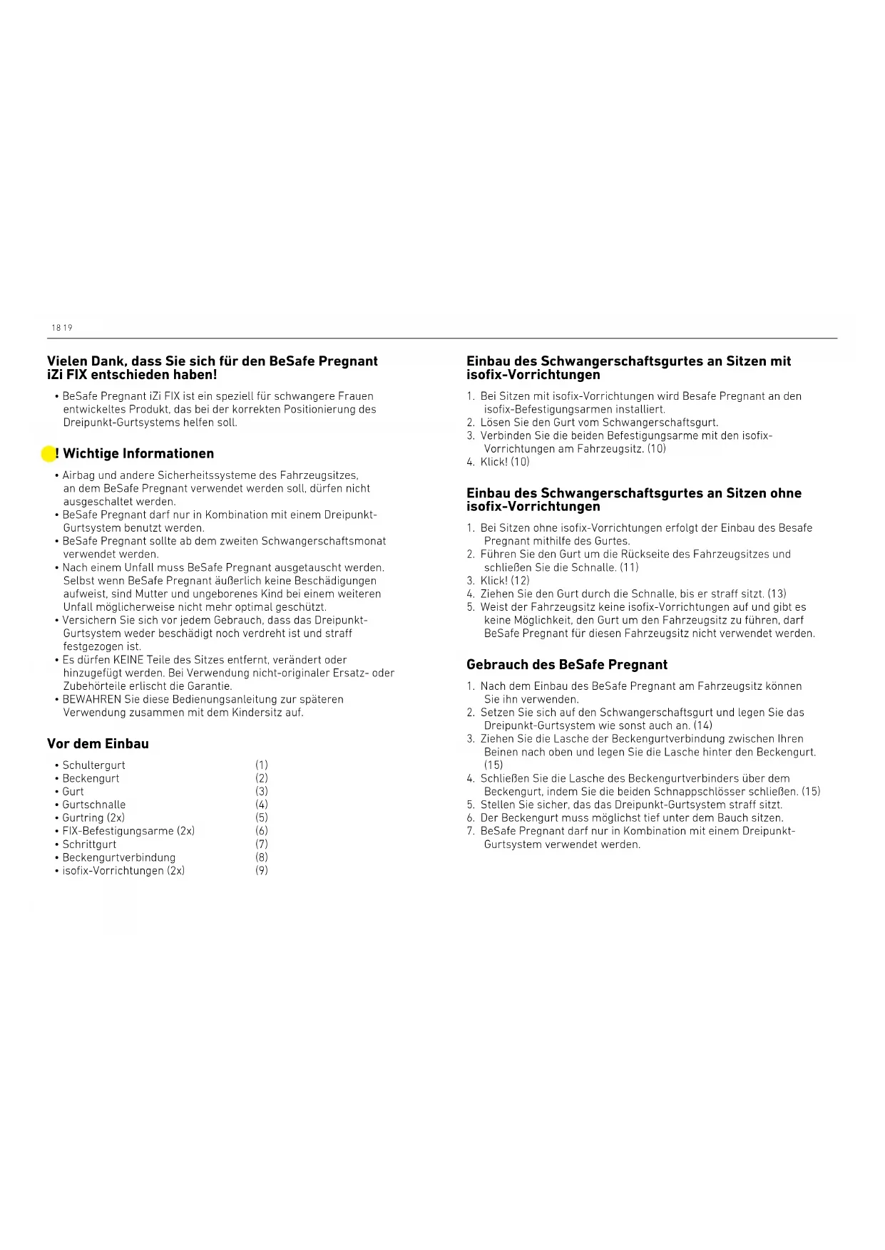 Finden Sie kostenlos die Bedienungsanleitung des Geräts Pregnant iZi FIX BESAFE als PDF.