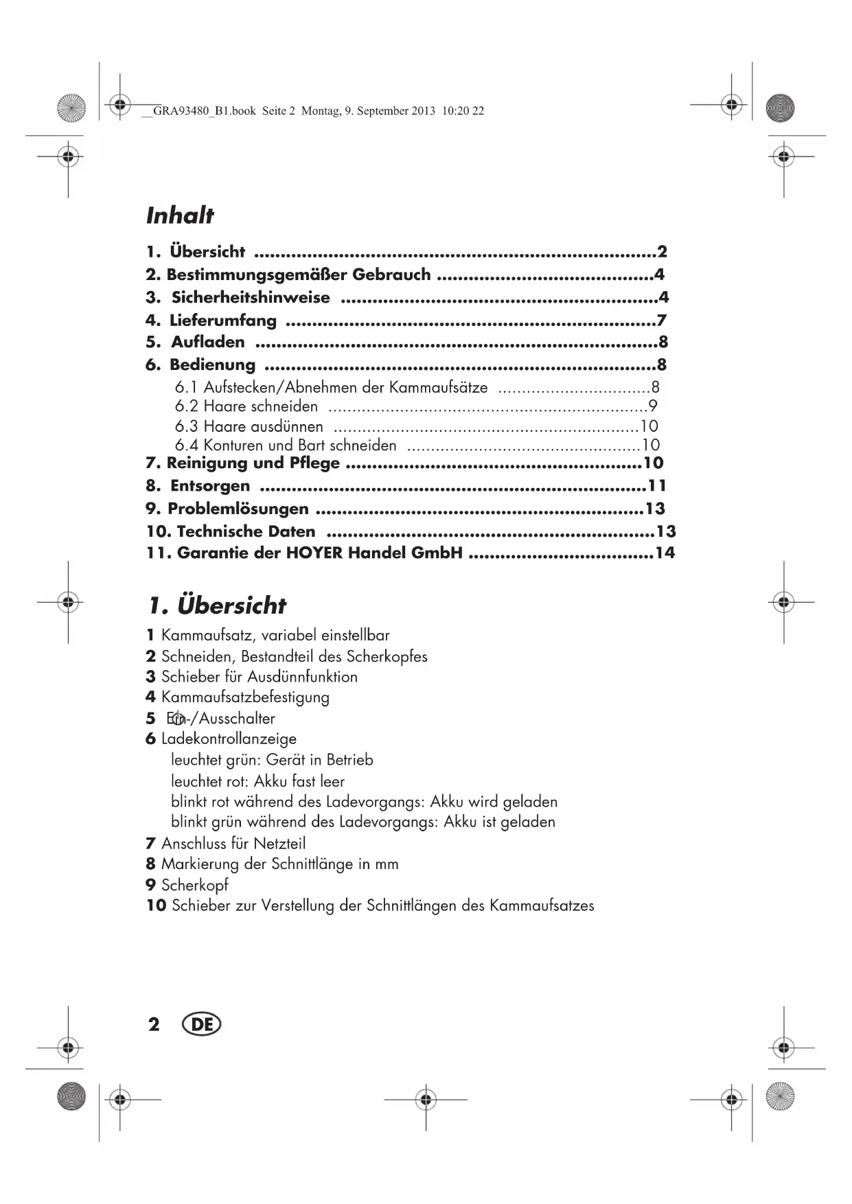- Falls Sie das Gerät einmal weitergeben, legen Sie bitte diese Bedienungsanleitung dazu. Wir wünschen Ihnen viel Freude mit Ihrem neuen Haar- und Bartschneider! __GRA93480_B1.book Seite 3 Montag, 9. September 2013 10:20 224