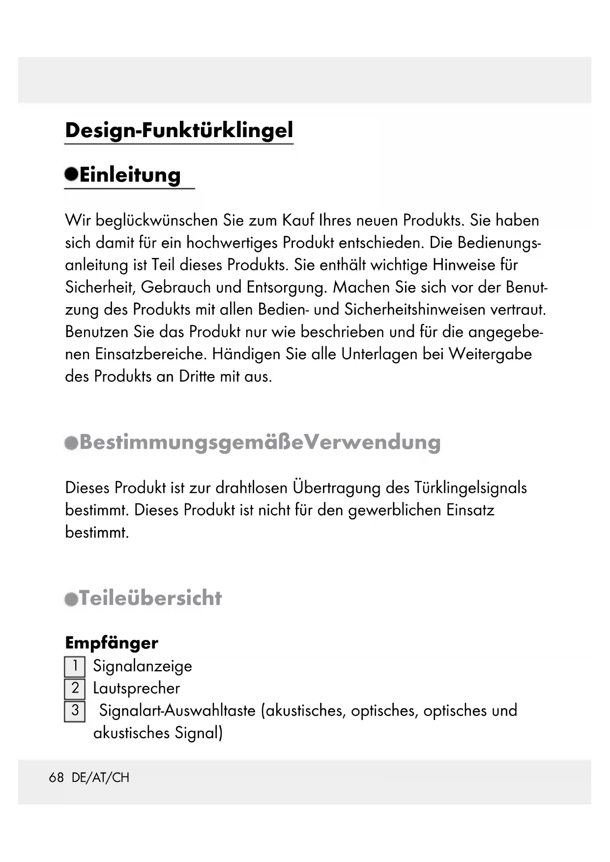 DESIGN-FUNKTÜRKLINGEL Montage-, Bedienungs- und Sicherheitshinweise