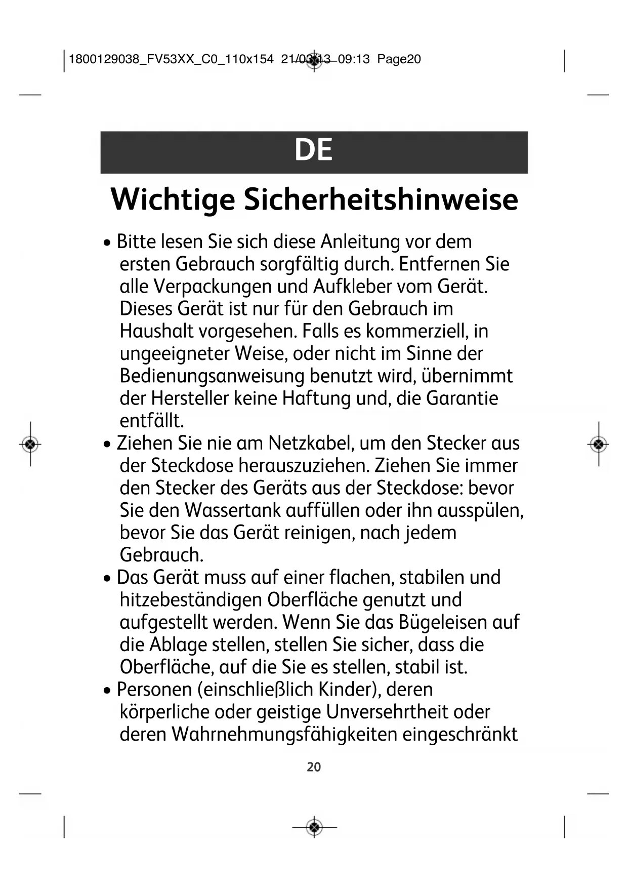 - Personen (einschließlich Kinder), deren körperliche oder geistige Unversehrtheit oder deren Wahrnehmungsfähigkeiten eingeschränkt 1800129038_FV53XX_C0_110x154 21/03/13 09:13 Page2021