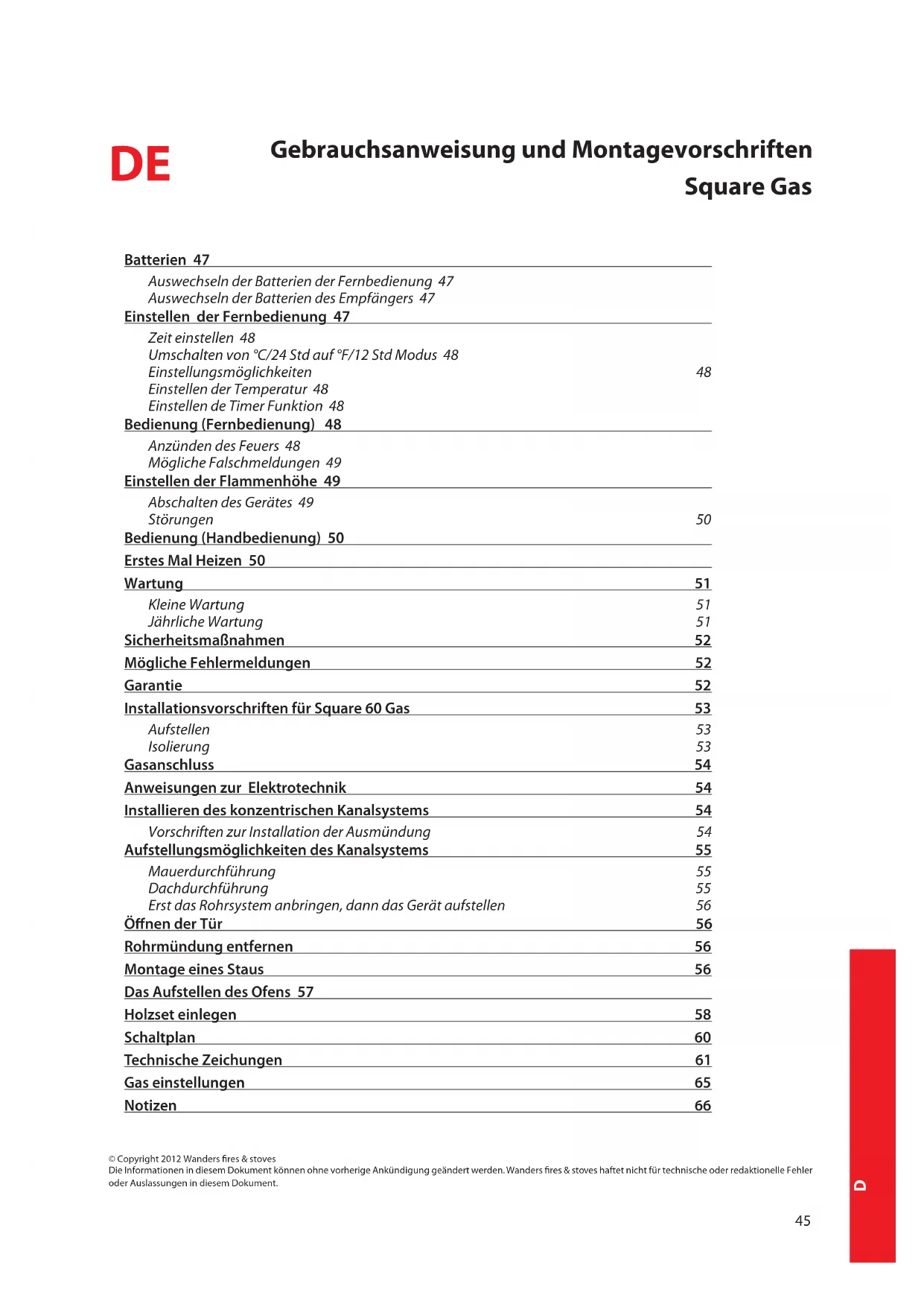 Bedienungsanleitung und Installationsvorschriften 45