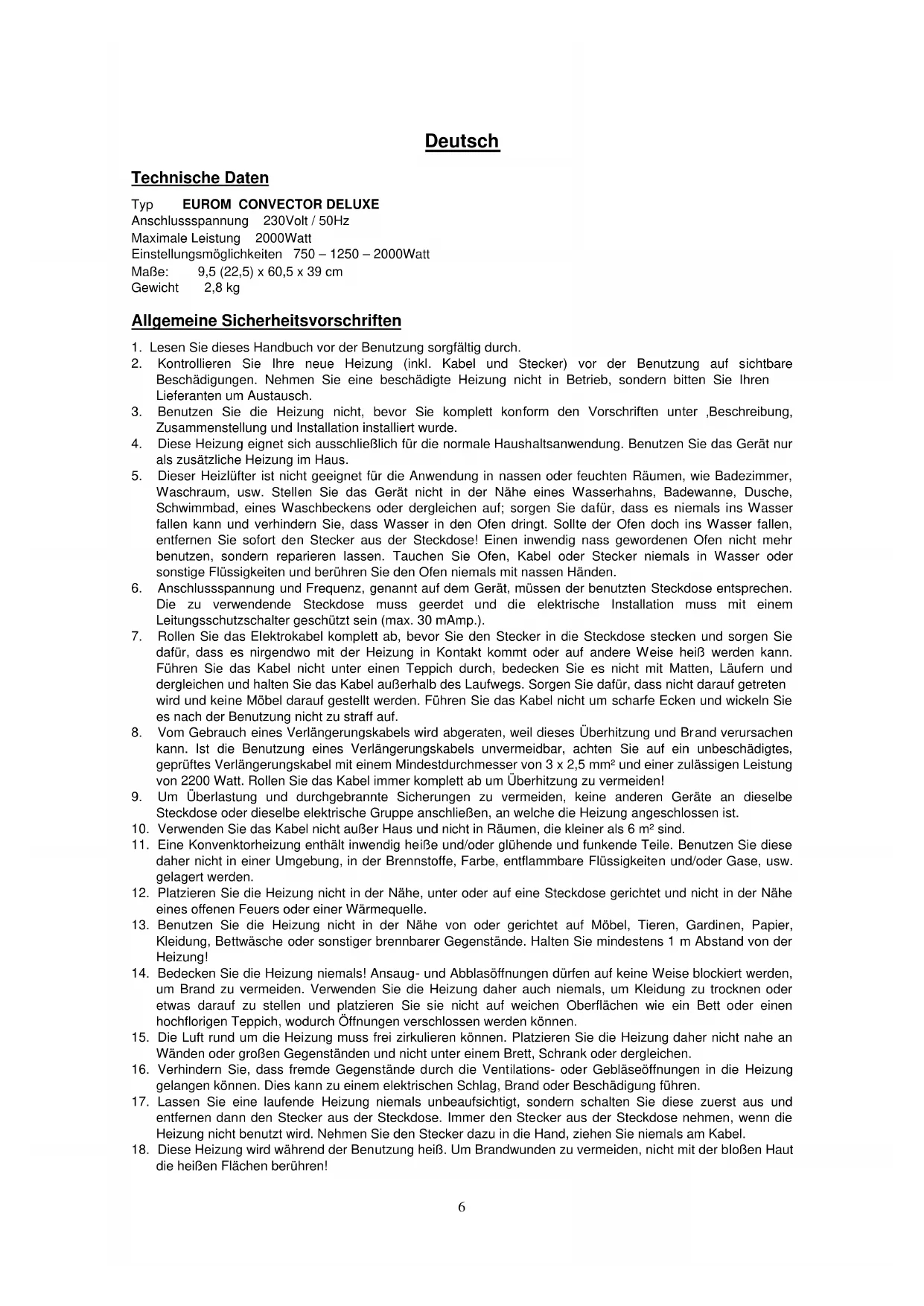 BEDIENUNGSANLEITUNG Convector Deluxe Eurom