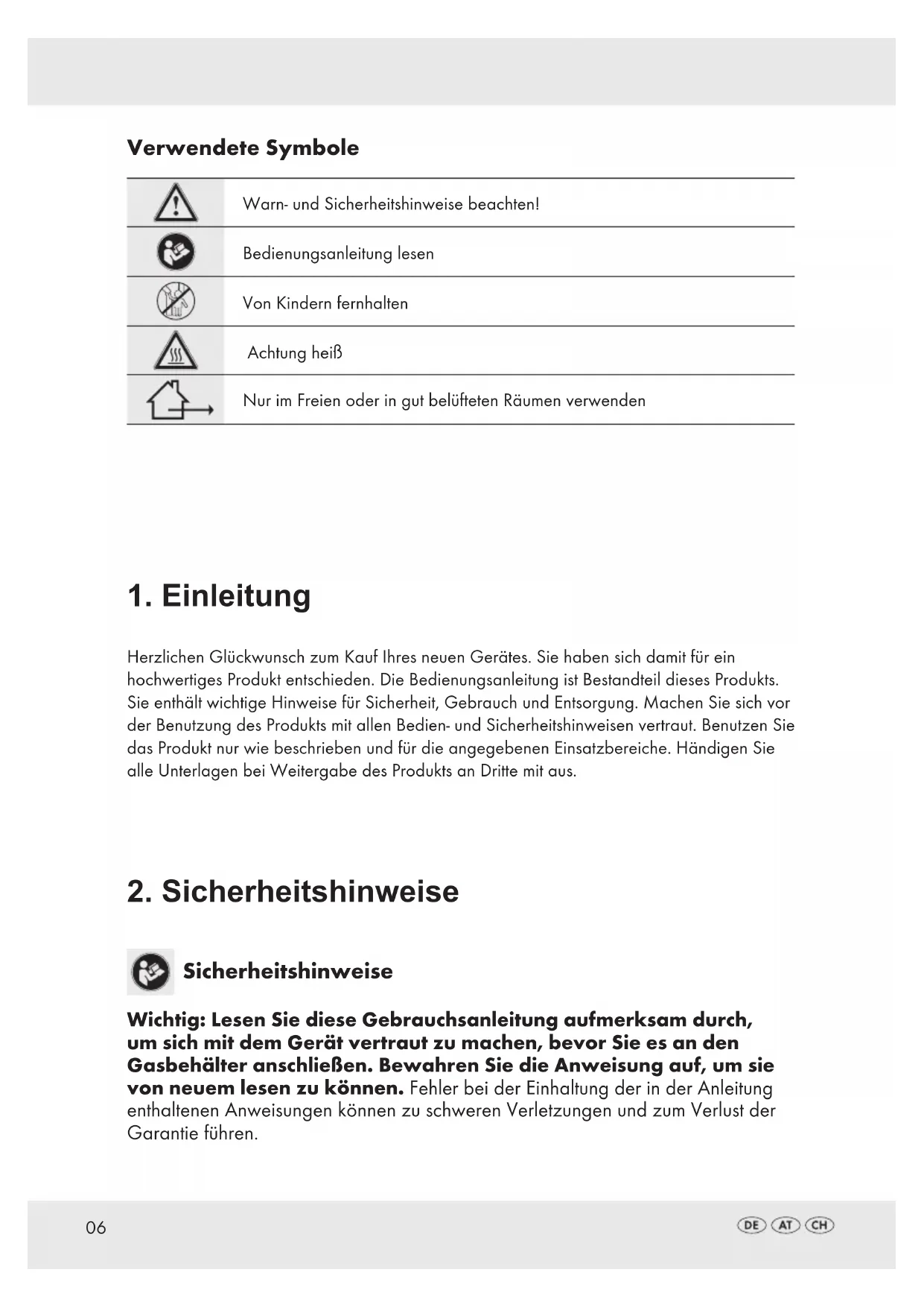 Verwendete Symbole Warn- und Sicherheitshinweise beachten! Bedienungsanleitung lesen Von Kindern fernhalten Achtung heiß Nur im Freien oder in gut belüfteten Räumen verwenden07 - Das Gerät und das Zubehör dürfen nicht verändert werden. Reparaturen dürfen nur von entsprechend qualifiziertem Fachpersonal bzw. von unserer Servicestelle durchgeführt werden. - Das Gerät darf nur in einem gut belüfteten Raum betrieben werden. Dabei gelten die nationalen Anforderungen