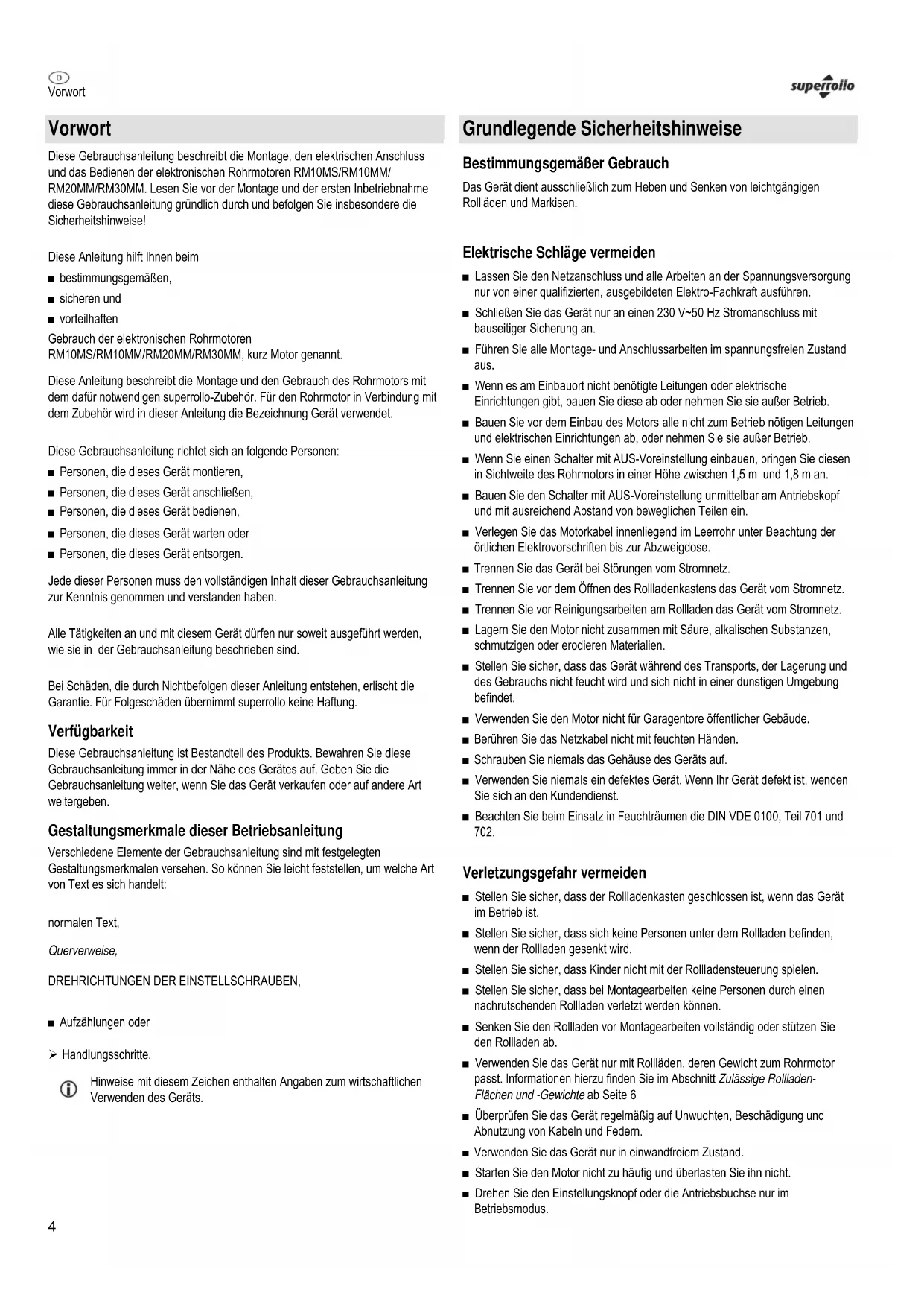RM10MS - Elektromotor Superrollo - Kostenlose Bedienungsanleitung