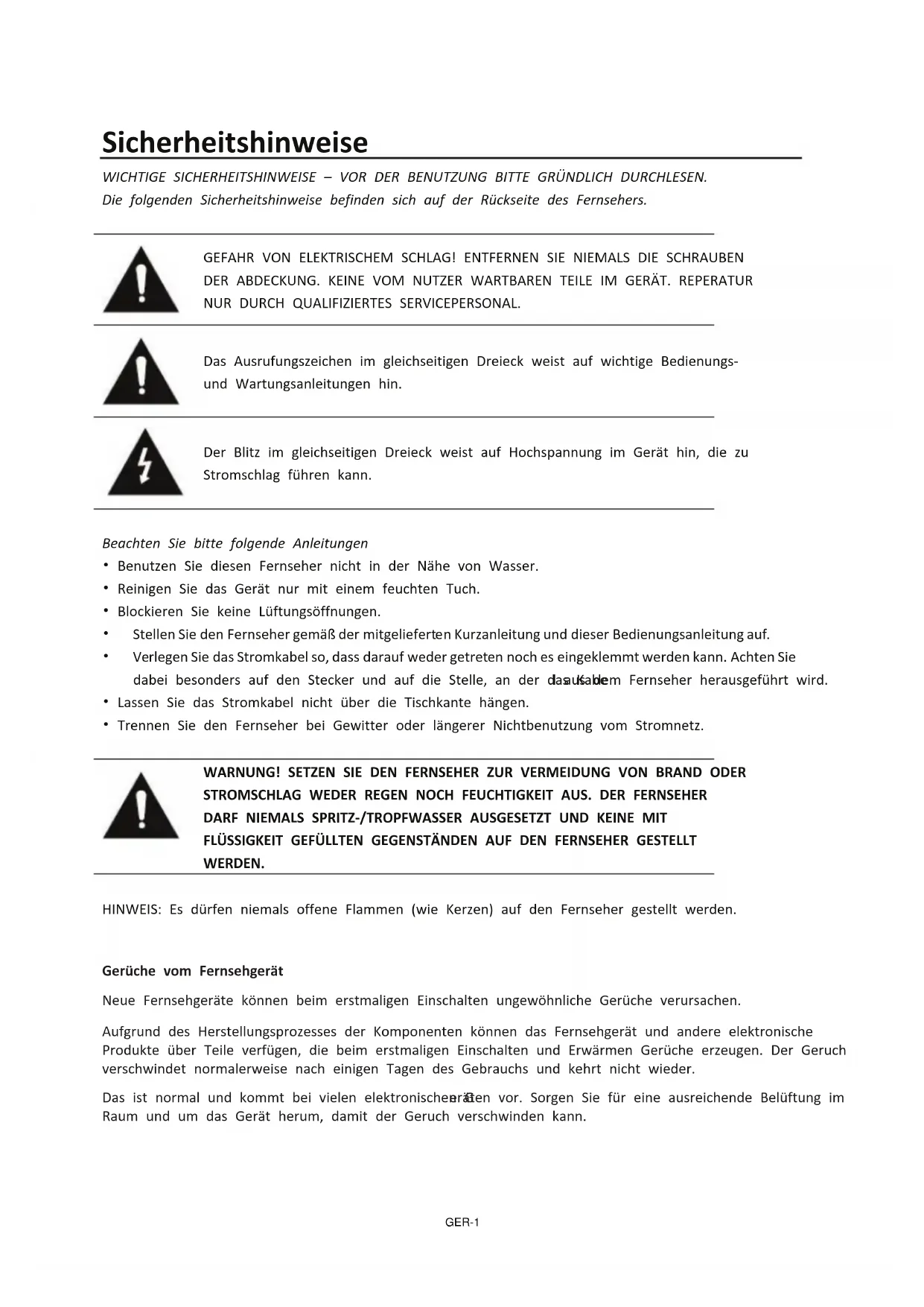 - Benutzen Sie diesen Fernseher nicht in der Nähe von Wasser.