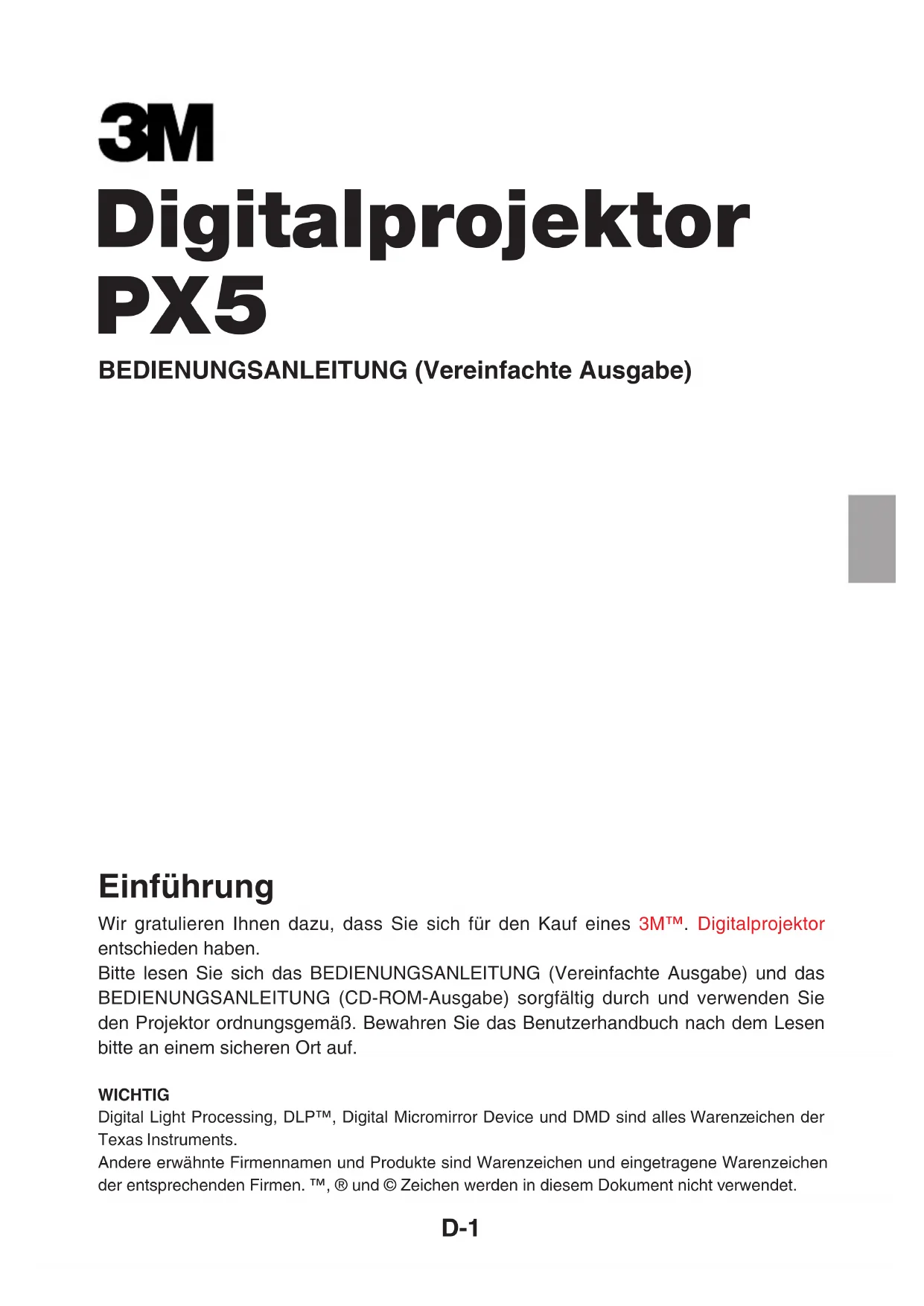 PX5 - Projektor 3M - Kostenlose Bedienungsanleitung