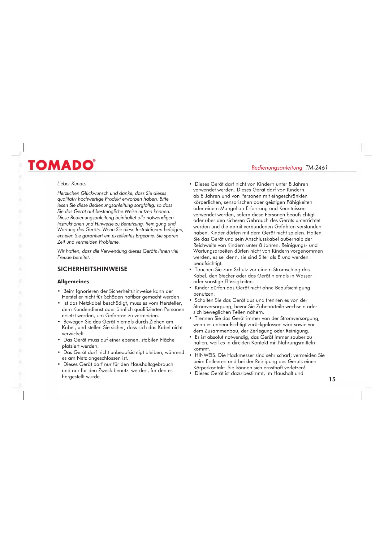 BEDIENUNGSANLEITUNG TM2461 Tomado