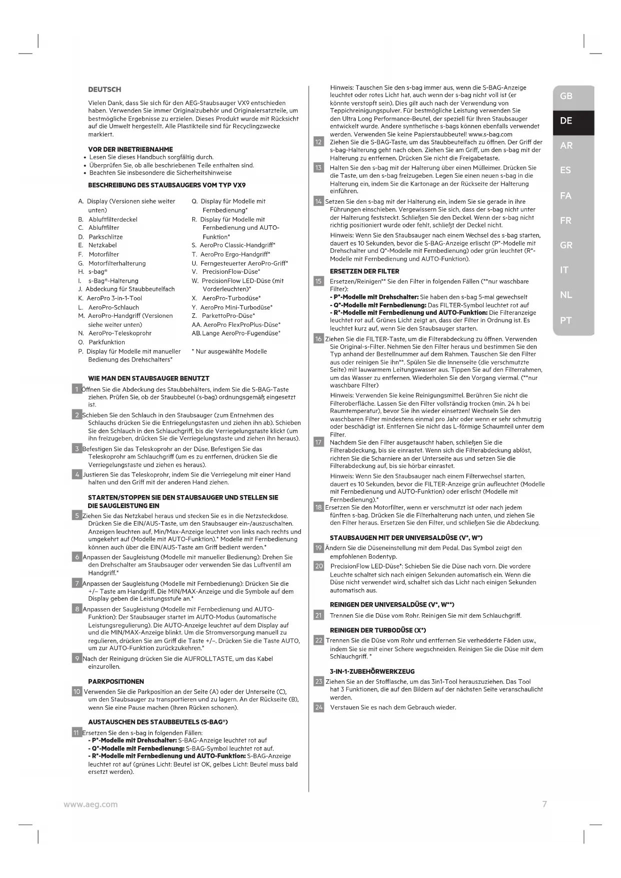 VX946PT - Staubsauger AEG - Kostenlose Bedienungsanleitung