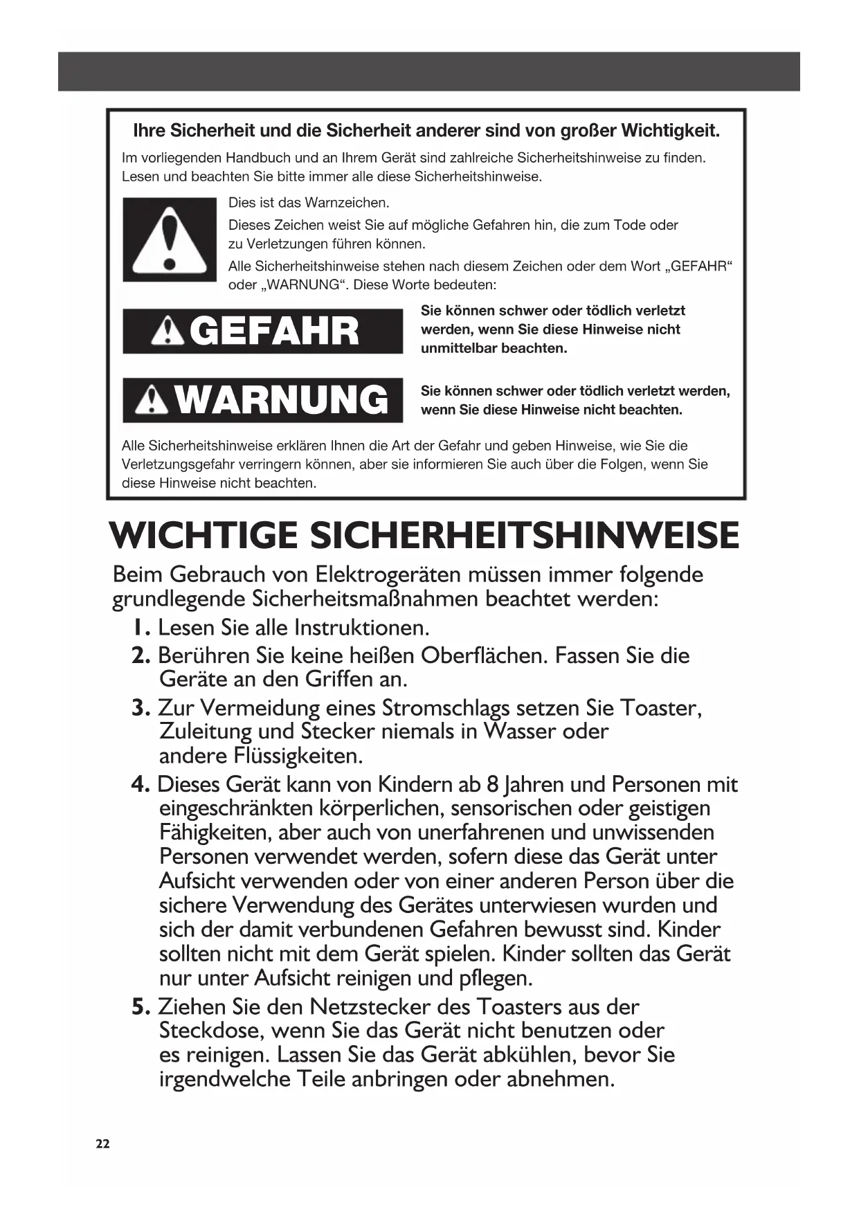 SICHERHEITSHINWEISE ZUM TOASTER