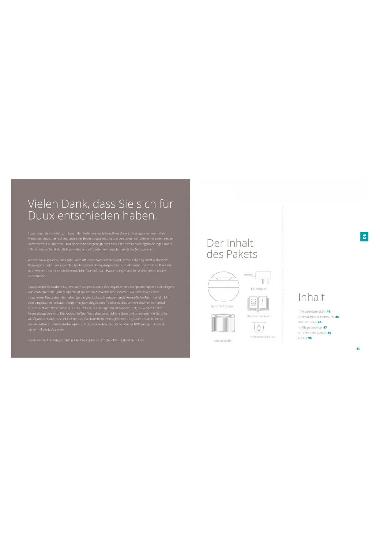 BEDIENUNGSANLEITUNG Sphere DUUX