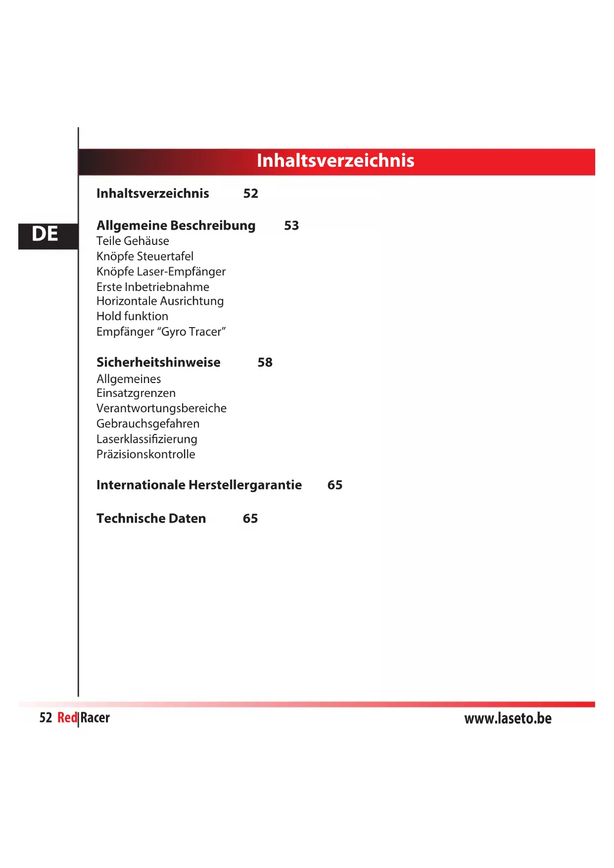 Laden Sie die Anleitung für Ihr Laserwasserwaage kostenlos im PDF-Format! Finden Sie Ihr Handbuch Red Racer - FUTECH und nehmen Sie Ihr elektronisches Gerät wieder in die Hand. Auf dieser Seite sind alle Dokumente veröffentlicht, die für die Verwendung Ihres Geräts notwendig sind. Red Racer von der Marke FUTECH.