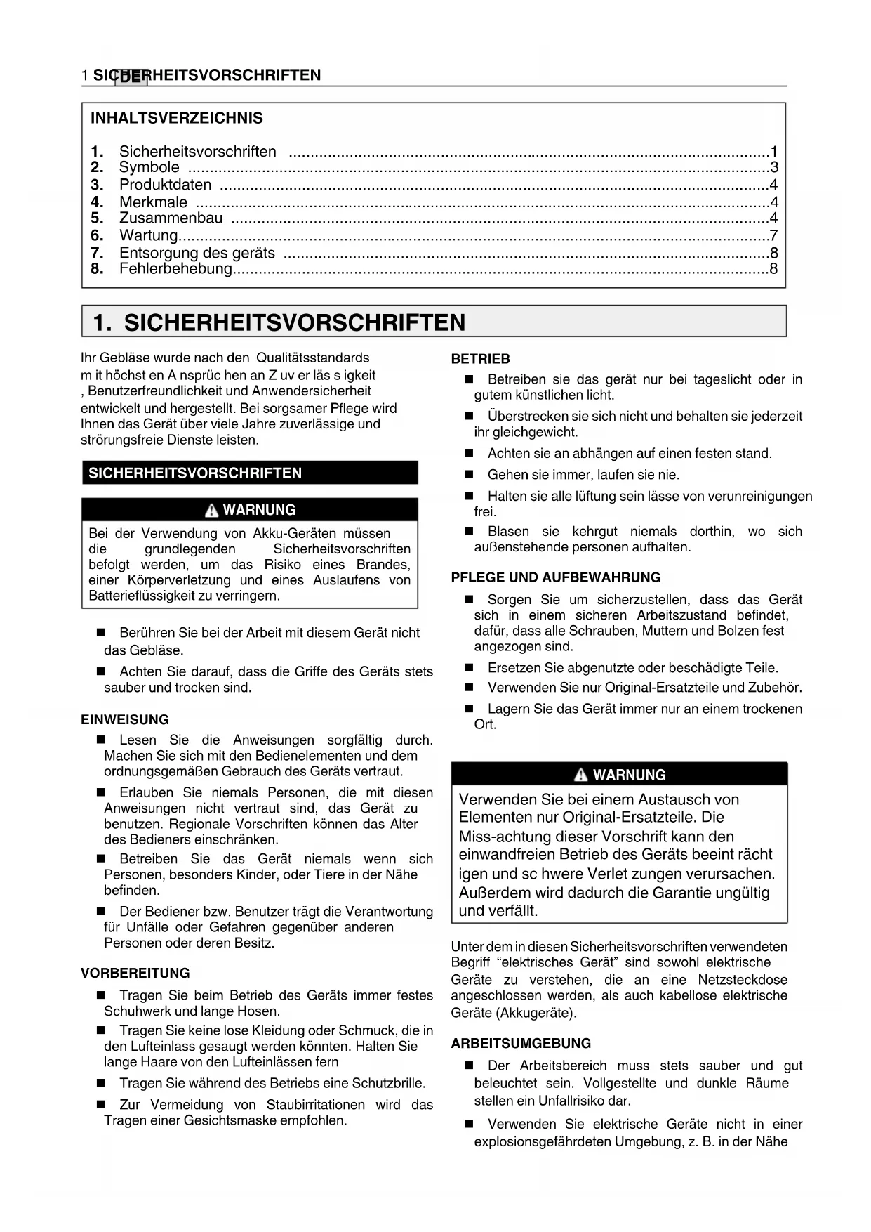 1. SICHERHEITSVORSCHRIFTEN