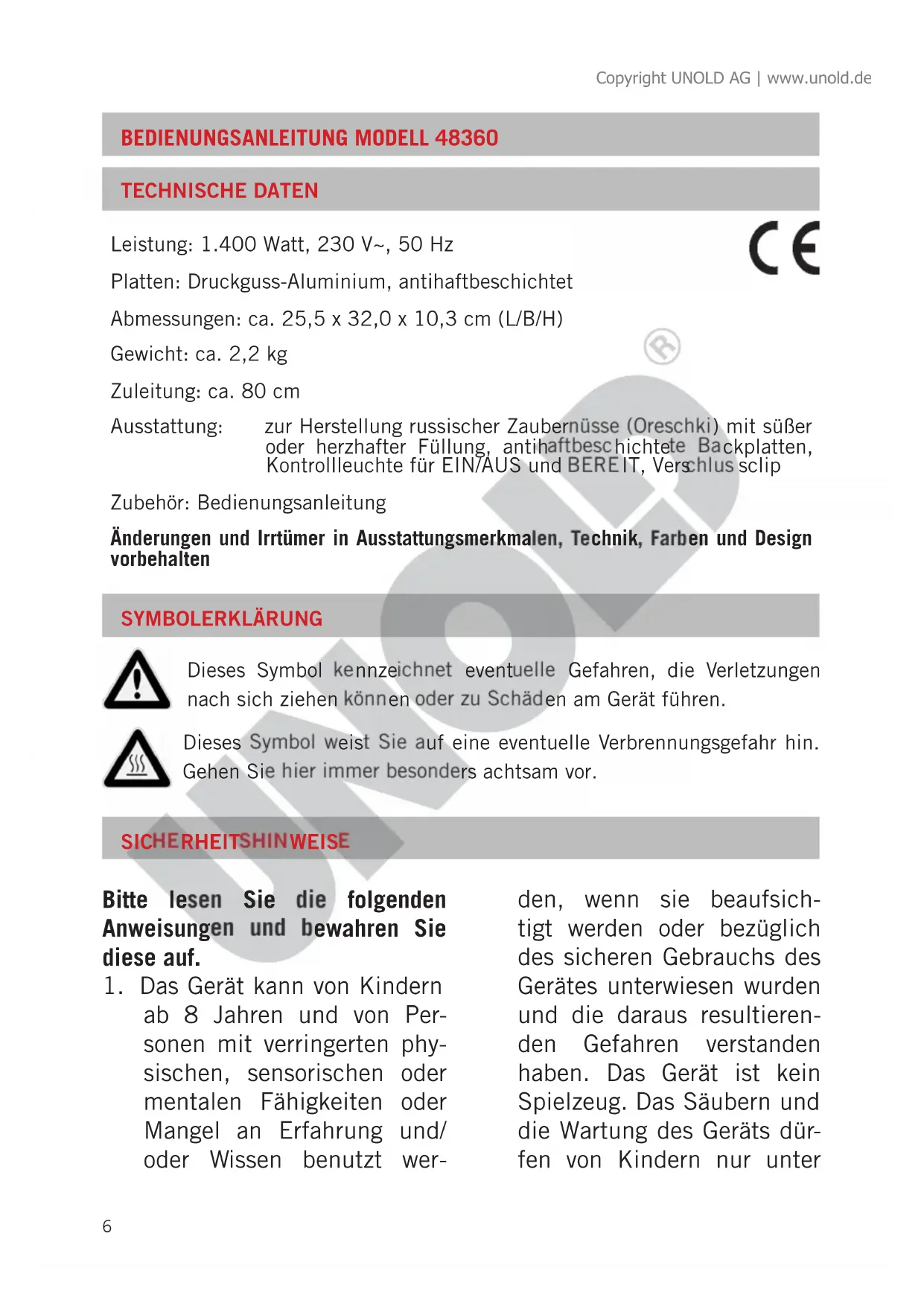 48360 - Waffeleisen UNOLD - Kostenlose Bedienungsanleitung
