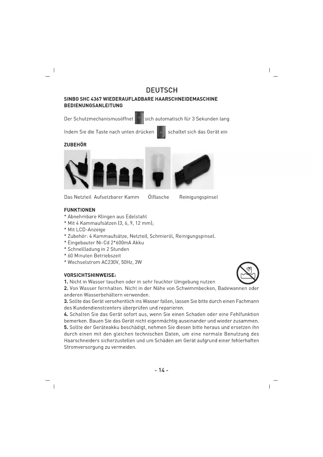 SHC 4367 - Bartschneider SINBO - Kostenlose Bedienungsanleitung