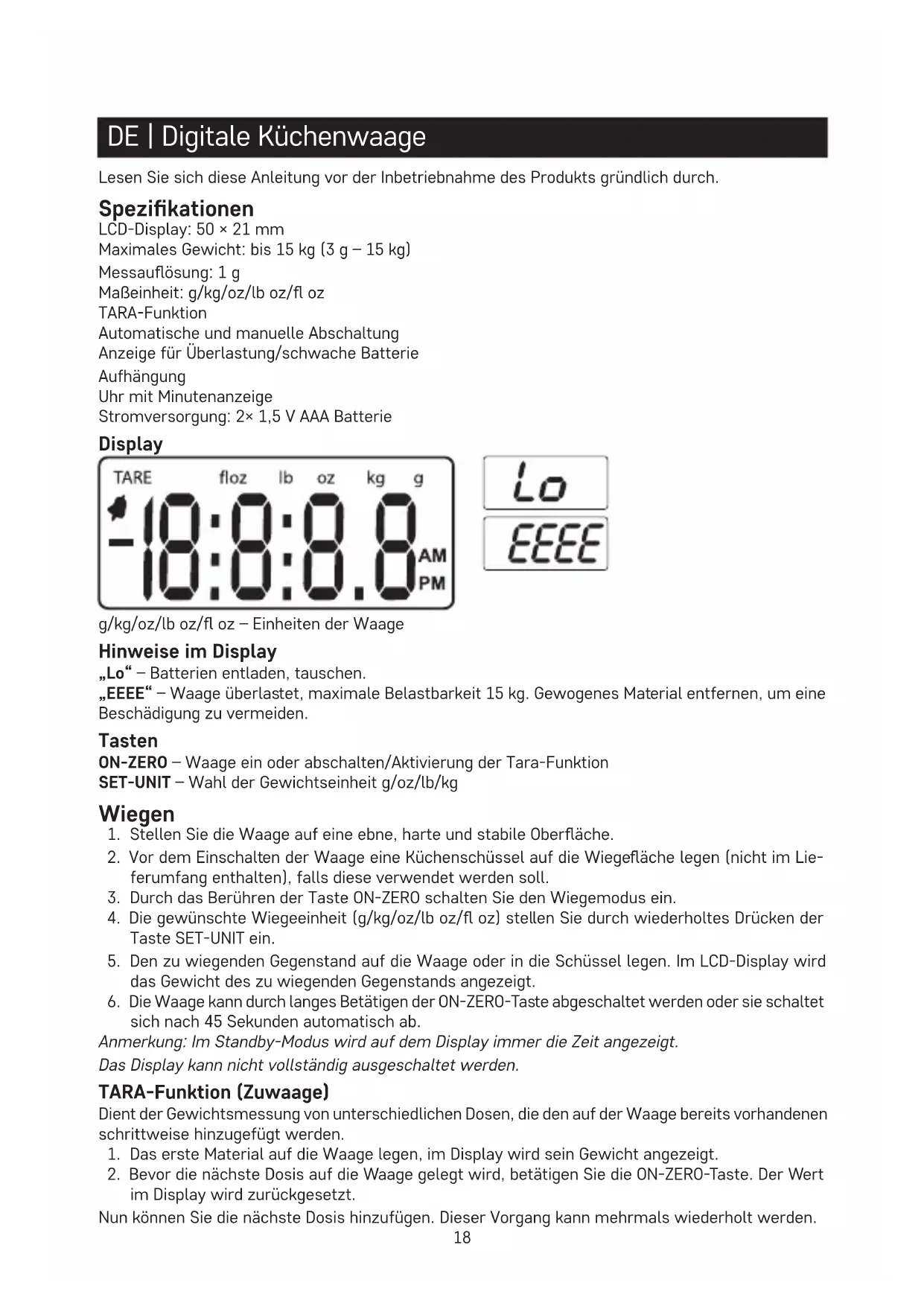 - These Waage ist nur zum Wiegen von Lebensmitteln zur Verwendung im Haushalt bestimmt.