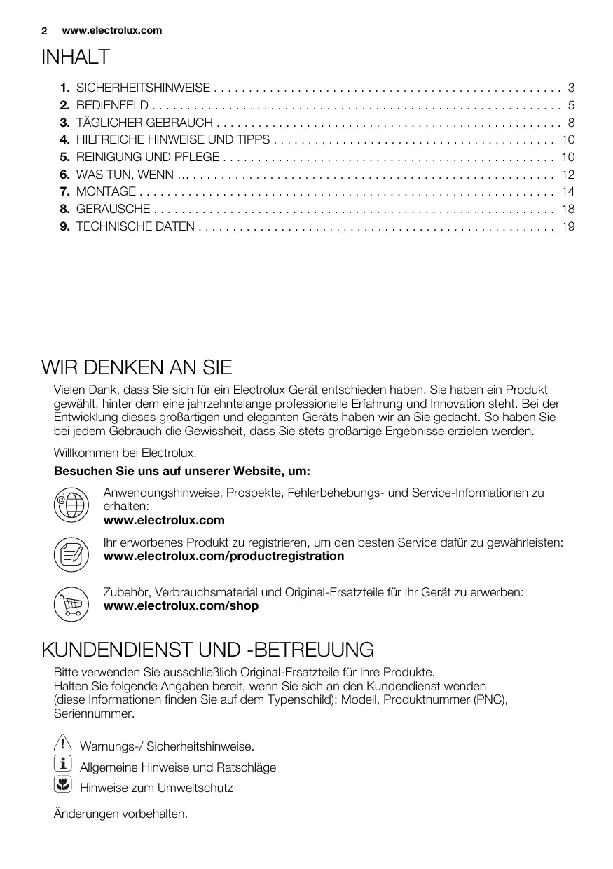 Vielen Dank, dass Sie sich für ein Electrolux Gerät entschieden haben. Sie haben ein Produkt gewählt, hinter dem eine jahrzehntelange professionelle Erfahrung und Innovation steht. Bei der Entwicklung这点es großigen und eleganten Geräts haben wir an Sie gedacht. So haben Sie bei jedem Gebrauch die Gewissheit, dass Sie stets großartige Ergebnisse erzielen werden.