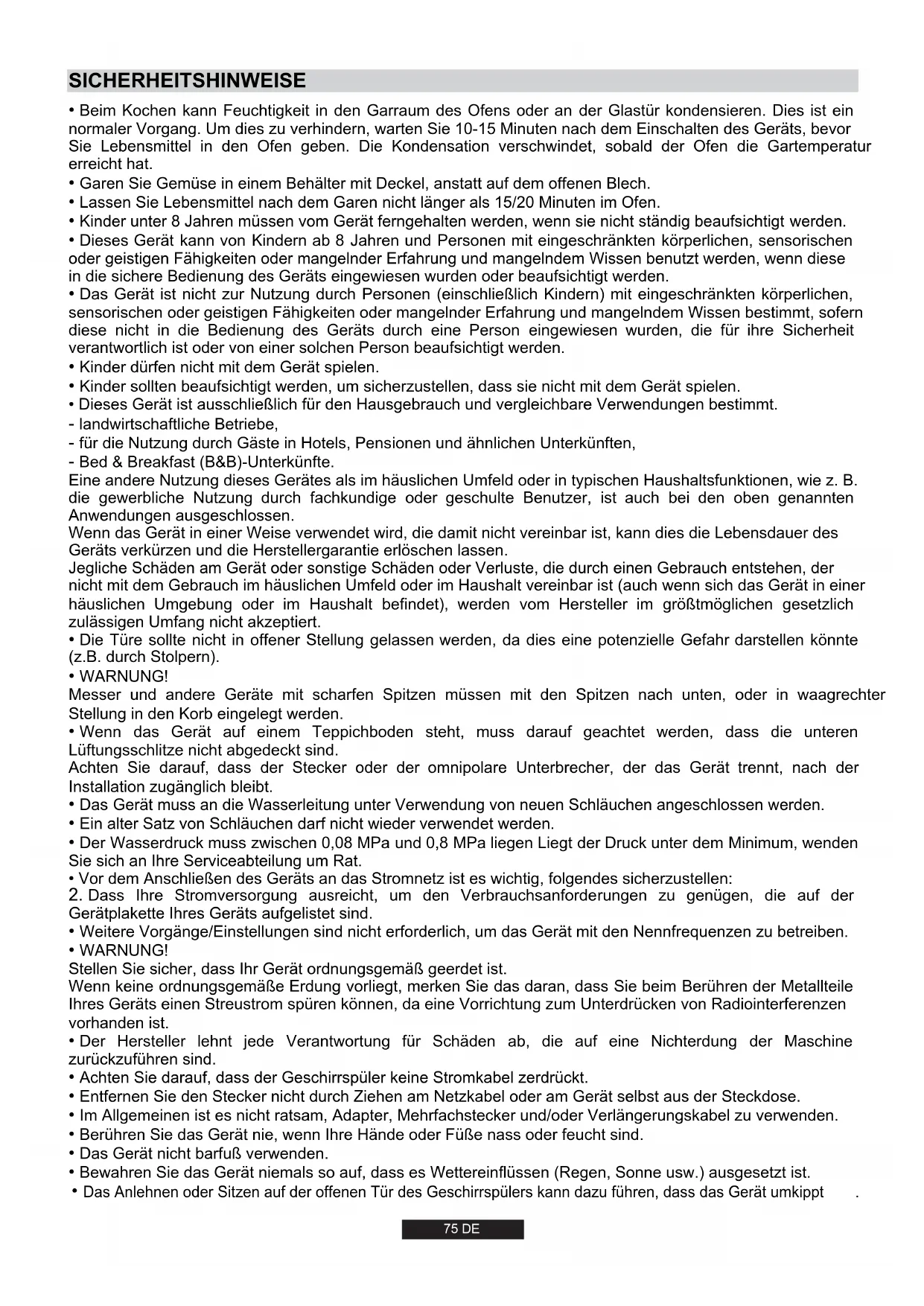 - Wasser, das am Ende des Spülprogramms in der Maschine oder auf dem Geschirr zurückbleibt, sollte nicht geschluckt werden.