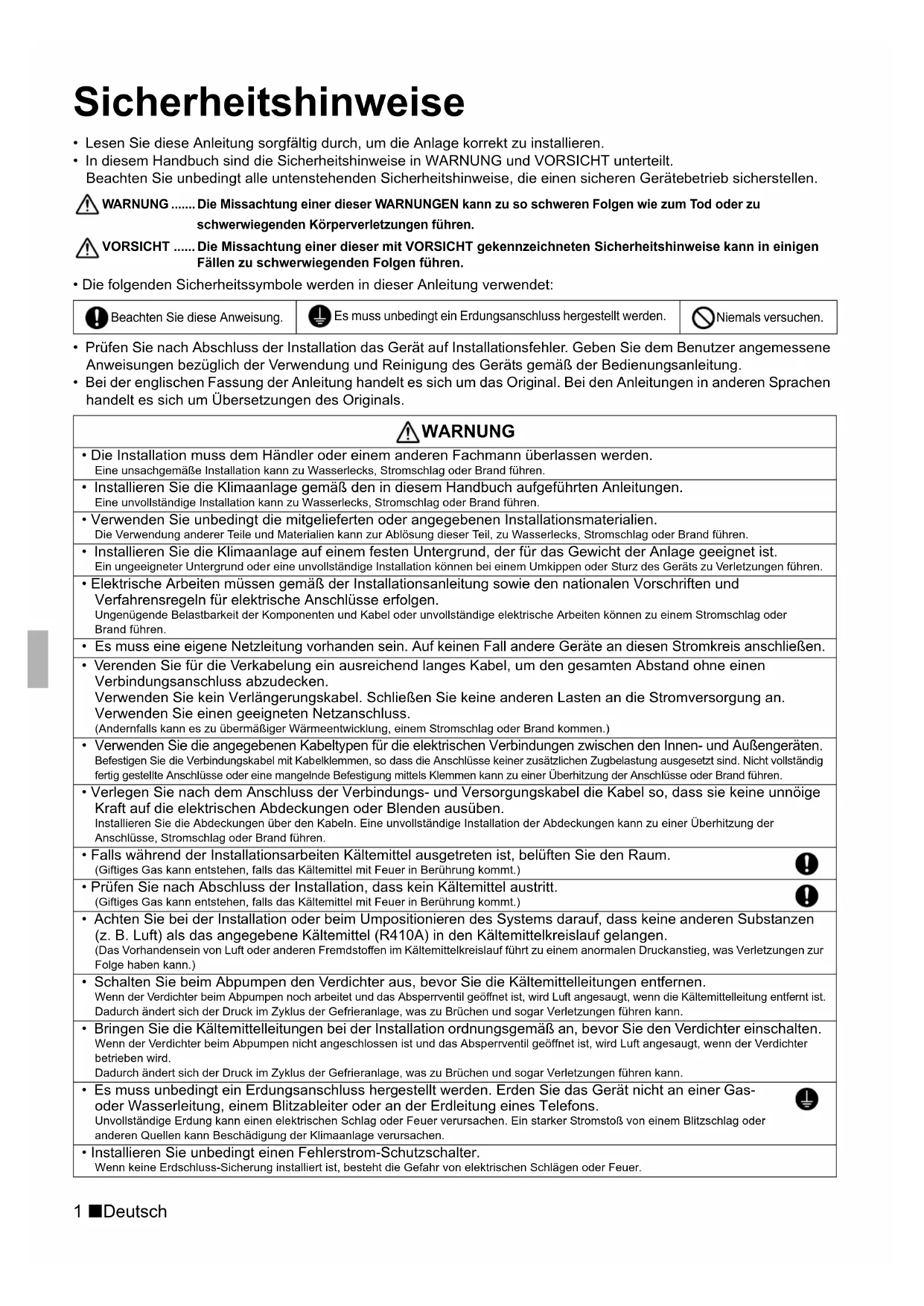 - Lesen Sie diese Anleitung sorgfältig durch, um die Anlage korrekt zu installieren.