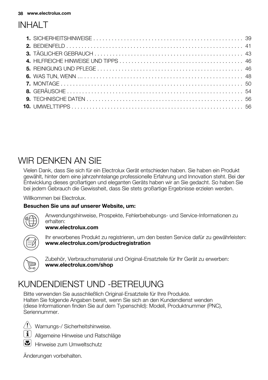 Vielen Dank, dass Sie sich für ein Electrolux Gerät entschieden haben. Sie haben ein Produkt gewählt, hinter dem eine jahrzehntelange professionelle Erfahrung und Innovation stehen. Bei der Entwicklung这点es großartigen und eleganten Geräts haben wir an Sie gedacht. So haben Sie bei jedem Gebrauch die Gewissheit, dass Sie stets großartige Ergebnisse erzielen werden.