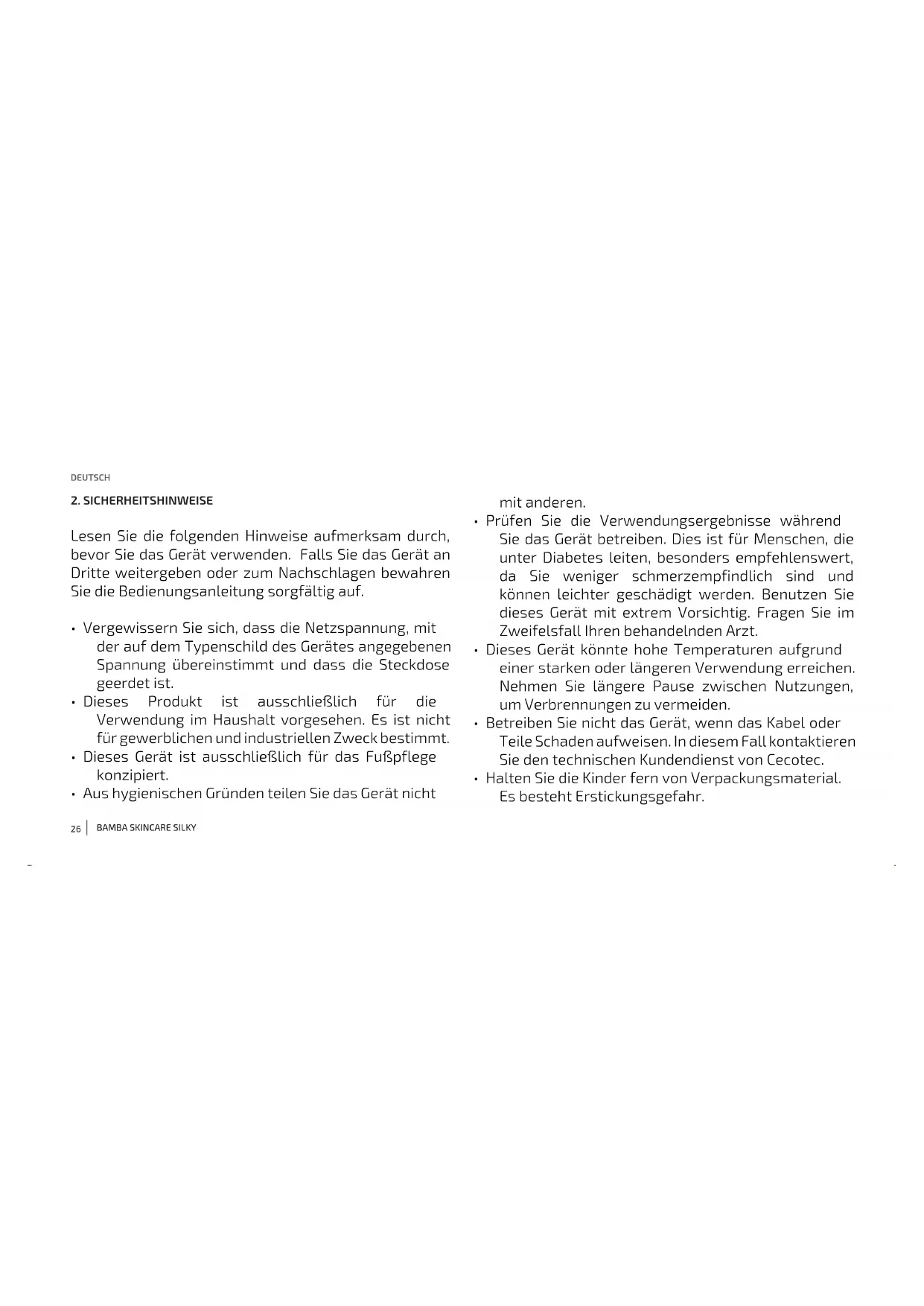 Finden Sie kostenlos die Bedienungsanleitung des Geräts Bamba SkinCare Silky CECOTEC als PDF.