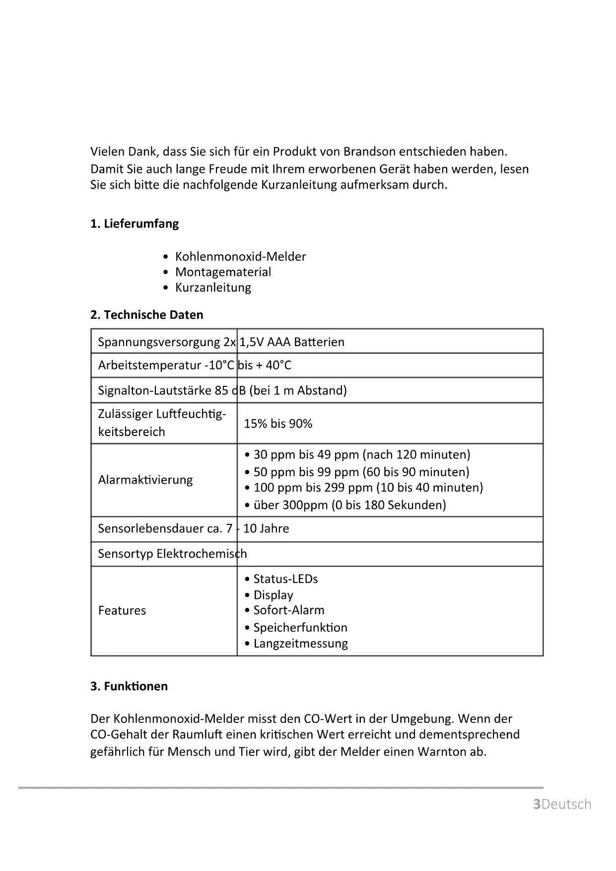 Bitte beachten Sie, dass der Kohlenmonoxid-Melder nicht als Ersatz für einen Rauch- oder Gasdetektor dient.