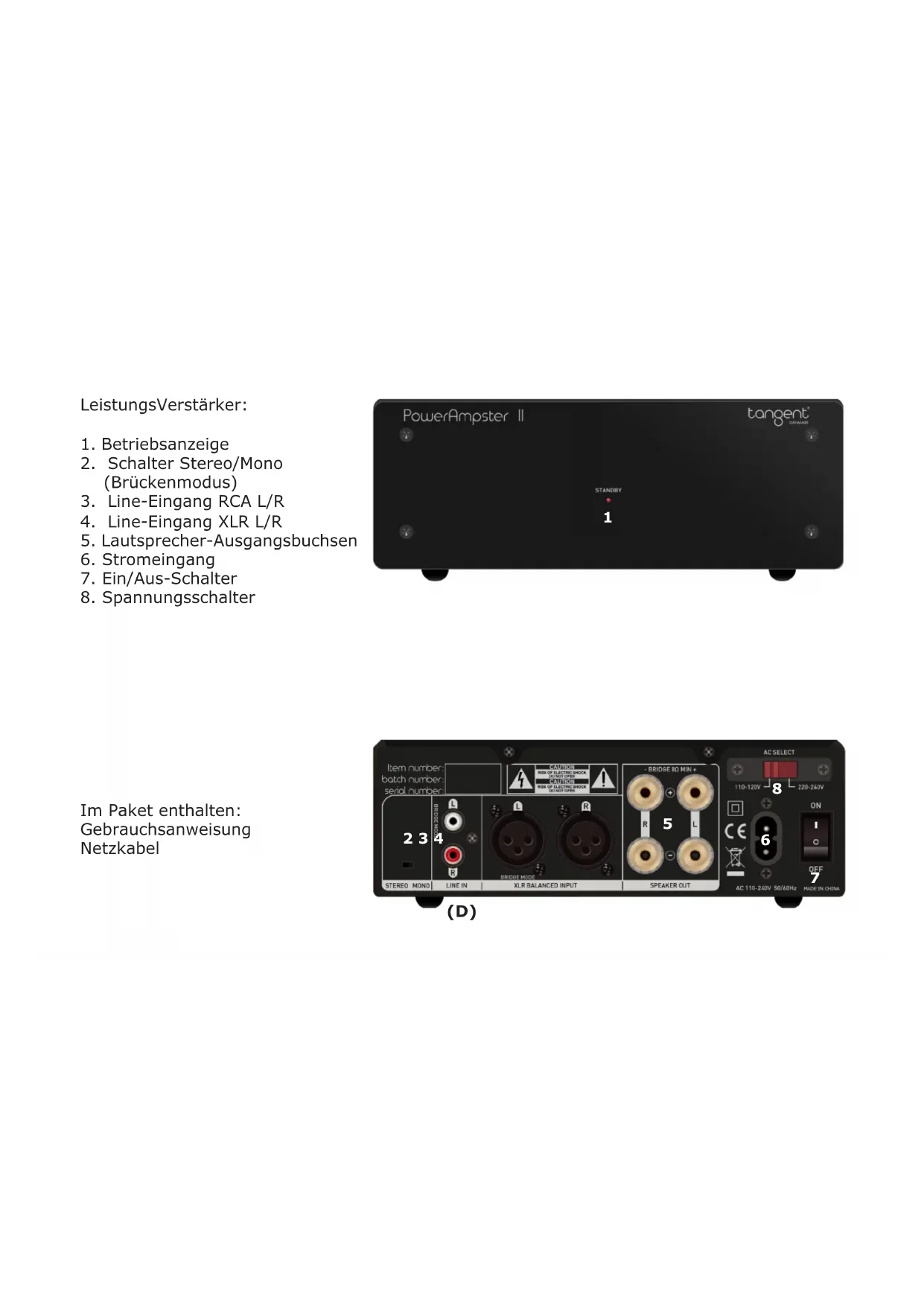 Laden Sie die Anleitung für Ihr Empfänger kostenlos im PDF-Format! Finden Sie Ihr Handbuch PowerAmpster II - TANGENT und nehmen Sie Ihr elektronisches Gerät wieder in die Hand. Auf dieser Seite sind alle Dokumente veröffentlicht, die für die Verwendung Ihres Geräts notwendig sind. PowerAmpster II von der Marke TANGENT.