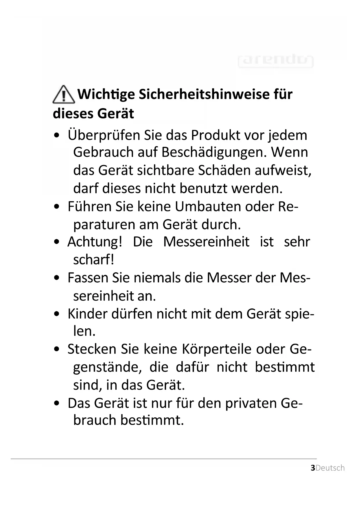 Vielen Dank, dass Sie sich für ein Produkt von Arendo entschieden haben. Damit Sie auch lange Freude mit Ihrem erworbenen Gerät haben werden, lesen Sie sich bitte die nachfolgende Kurzanleitung aufmerksam durch. Prüfen Sie vor Inbetriebnahme der gelieferten Ware, ob diese vollständig, fehlerfrei und unbeschädigt ist.