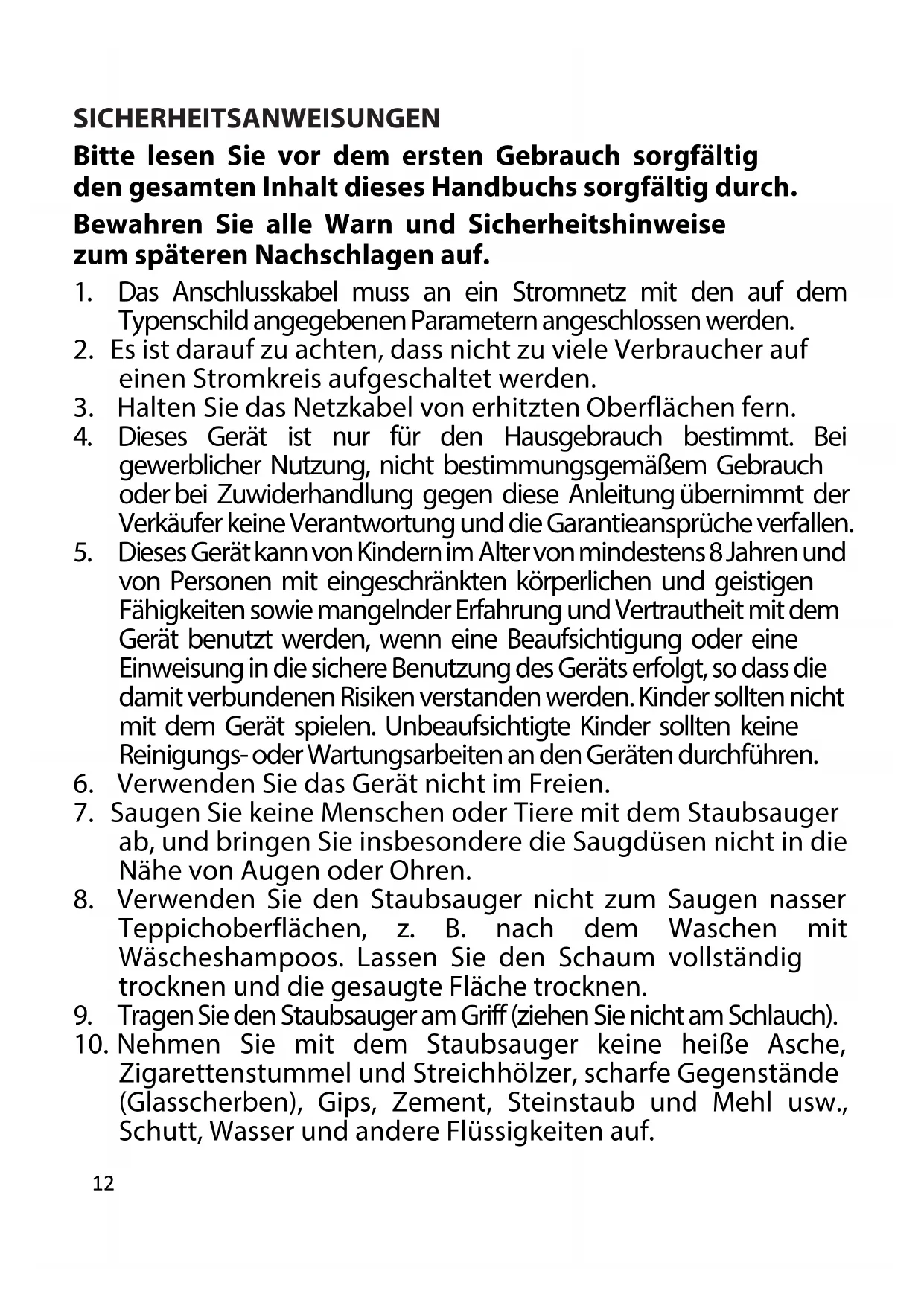 10. Nehmen Sie mit dem Staubsauger keine heiße Asche,