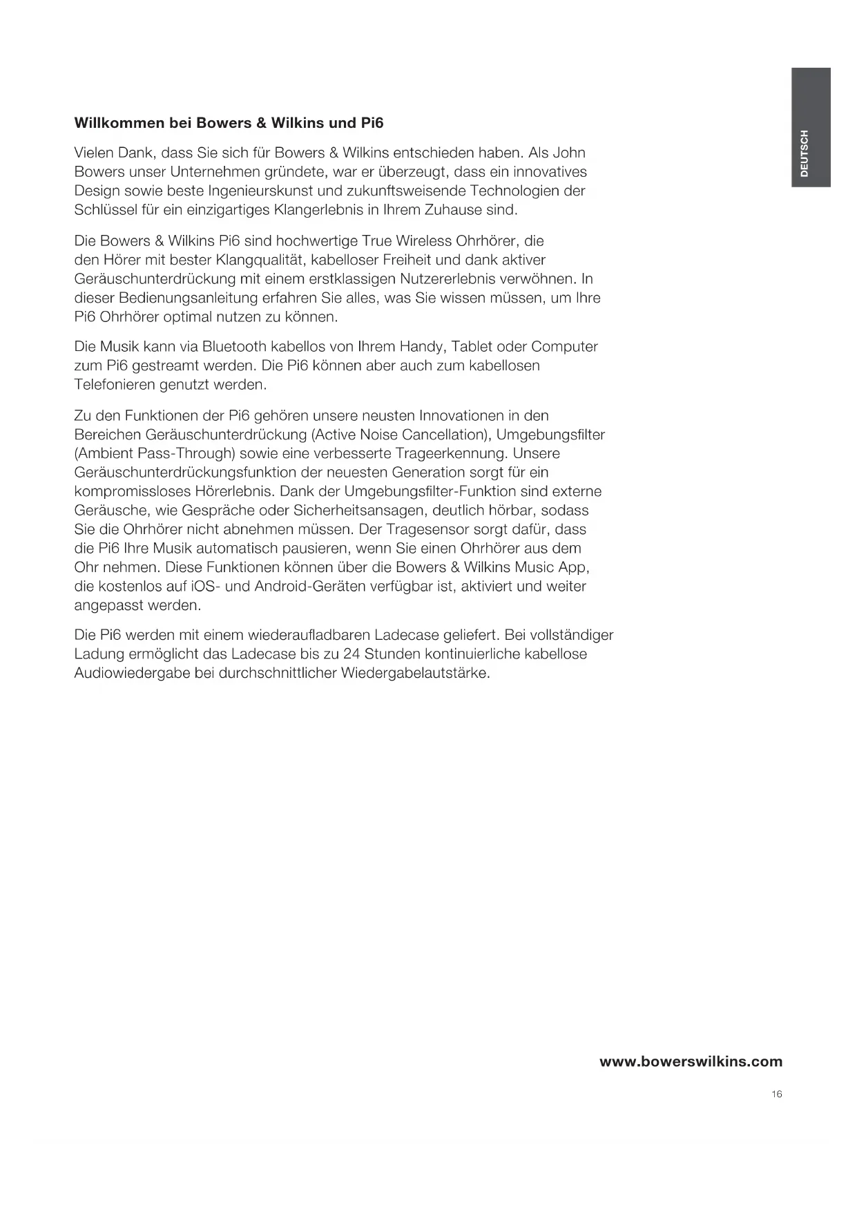 BEDIENUNGSANLEITUNG Pi6 BOWERS & WILKINS