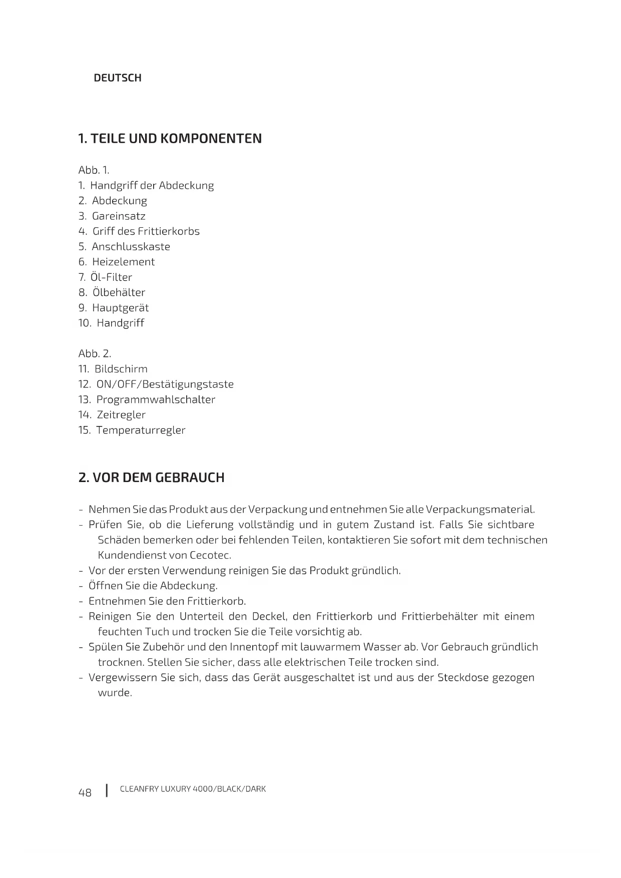 BEDIENUNGSANLEITUNG Cleanfry Luxury 4000 CECOTEC