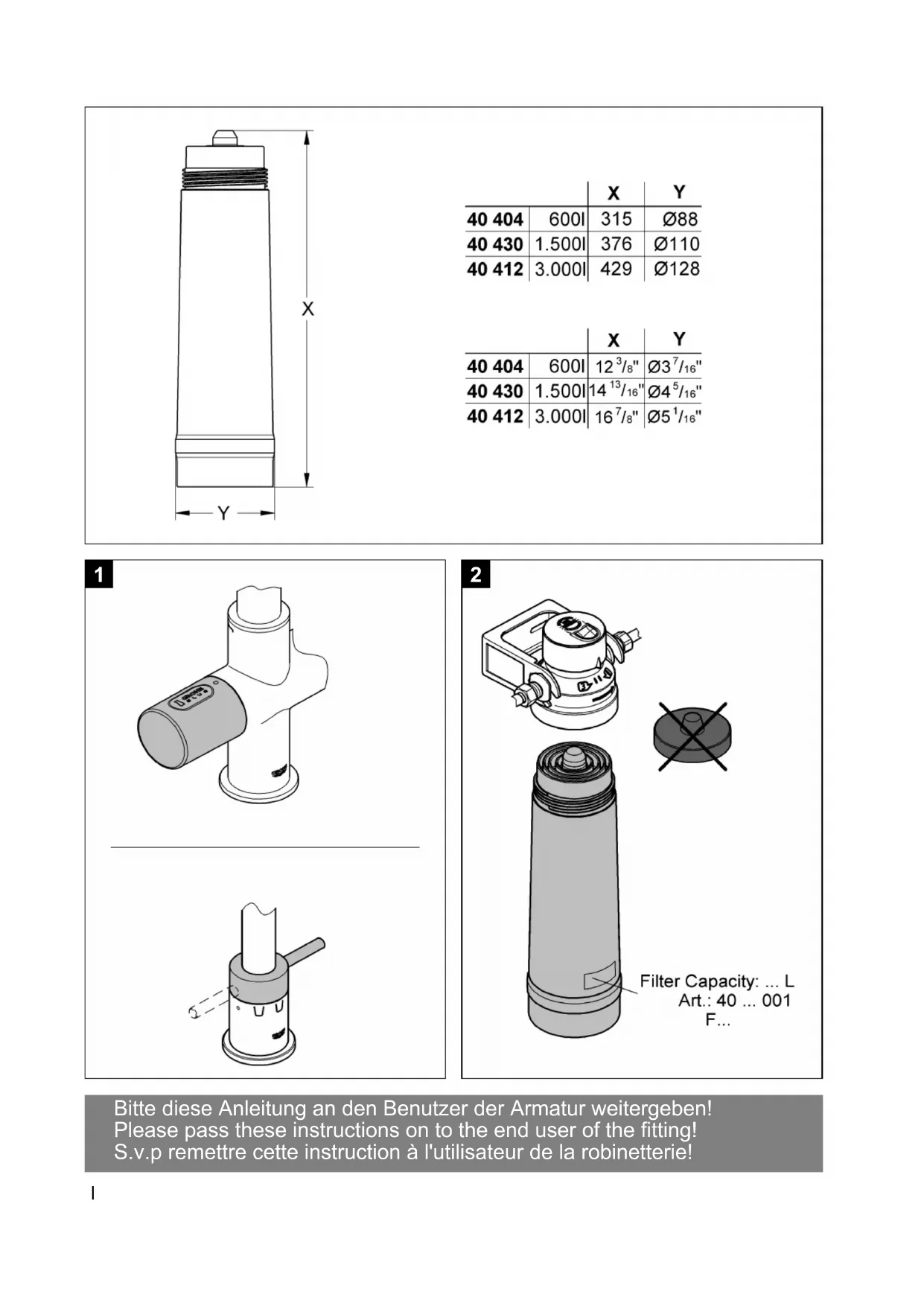 40430001 - Wasserfilter GROHE - Kostenlose Bedienungsanleitung