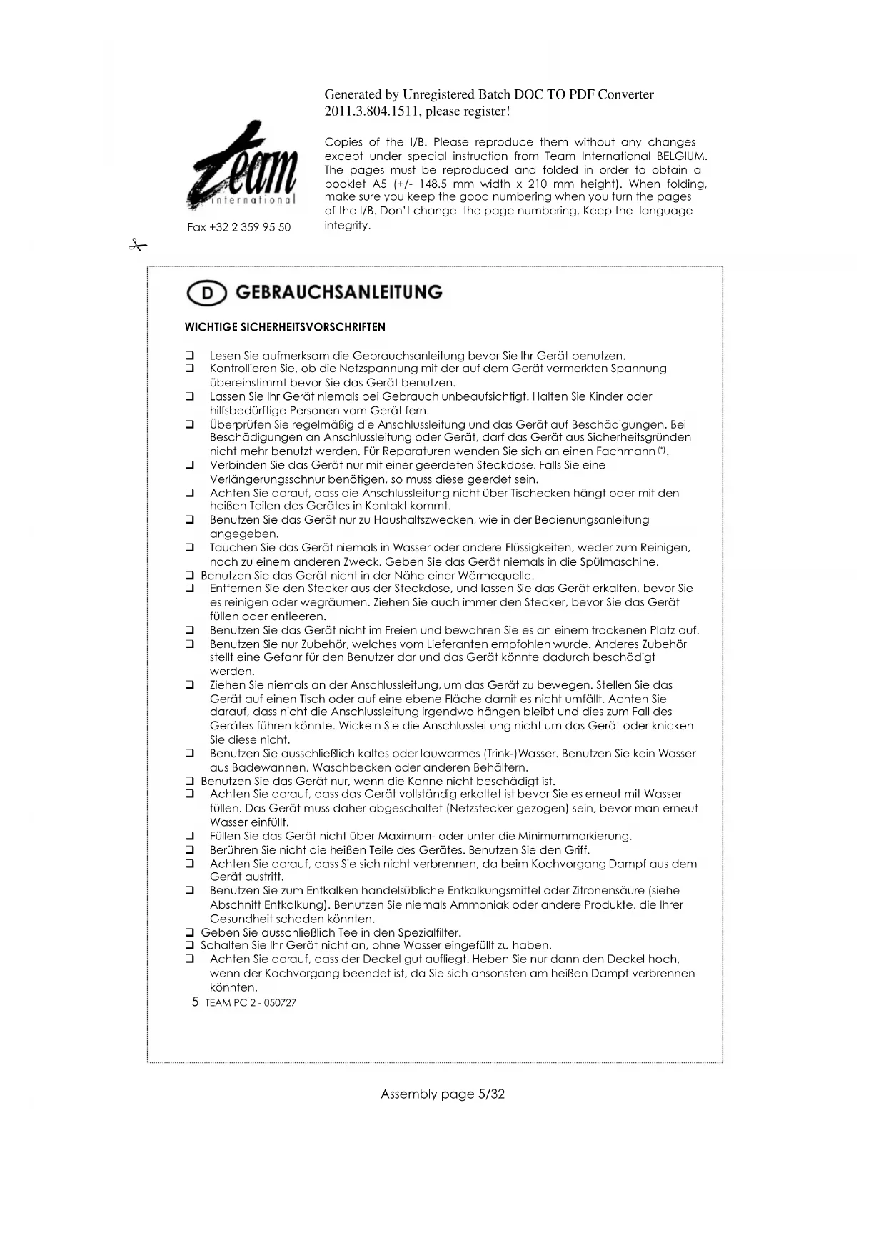 PC 2 - Elektrischer Wasserkocher TEAM - Kostenlose Bedienungsanleitung