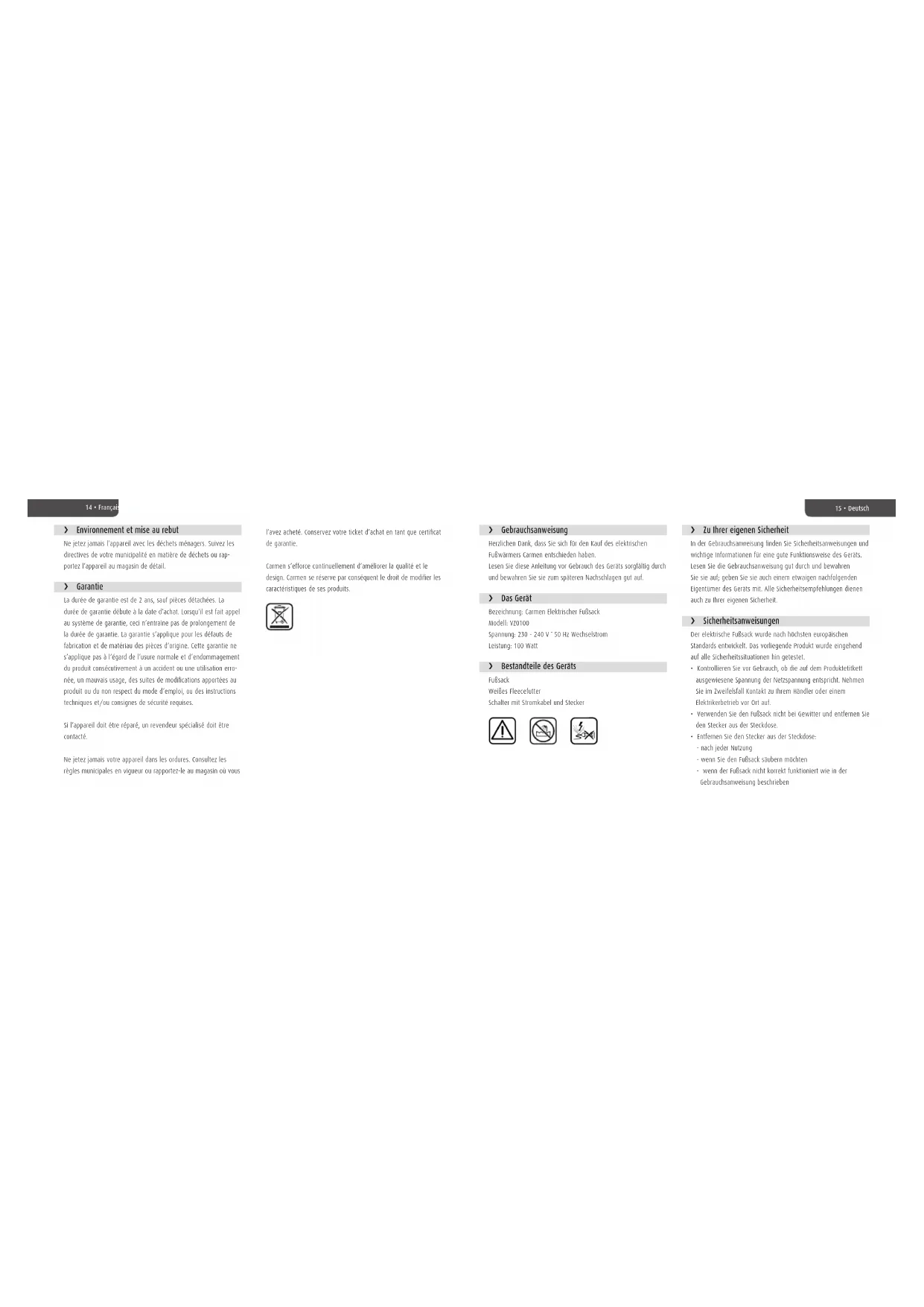 Finden Sie kostenlos die Bedienungsanleitung des Geräts VZ0100 Carmen als PDF.