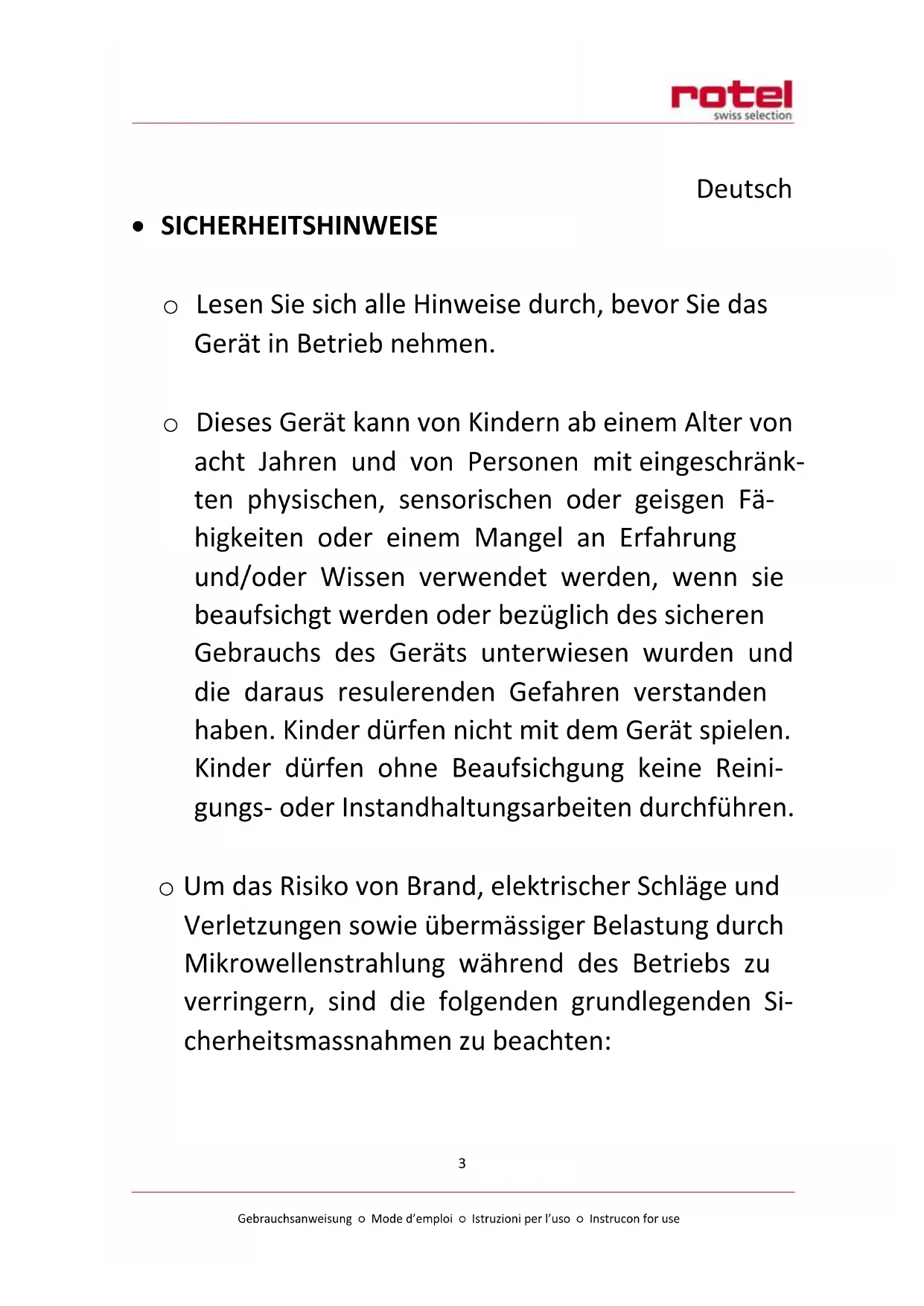 Für eine sachgerechte Entsorgung ist das Gerät dem Fachhändler, der Servicestelle oder der Firma Rotel AG zurückzugeben.
