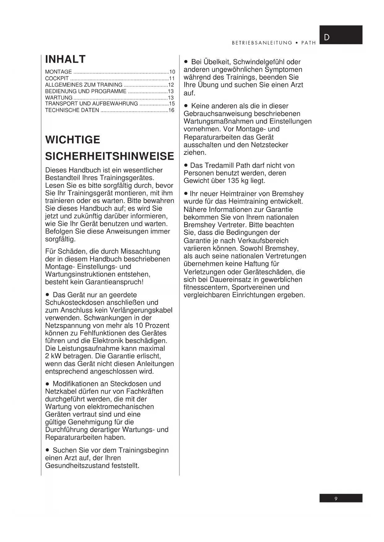 BEDIENUNGSANLEITUNG Treadline Path Bremshey