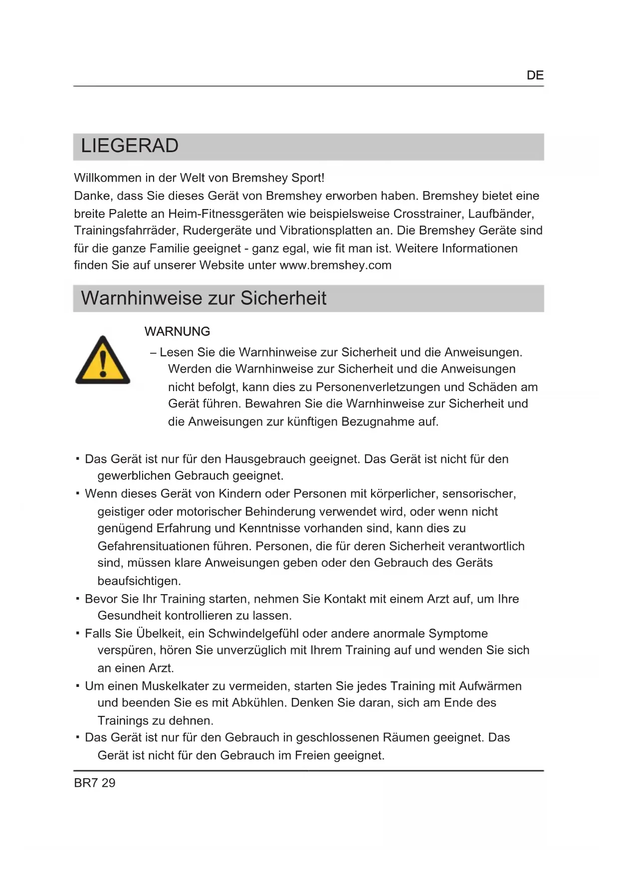 BR7 - Heimtrainer Bremshey - Kostenlose Bedienungsanleitung
