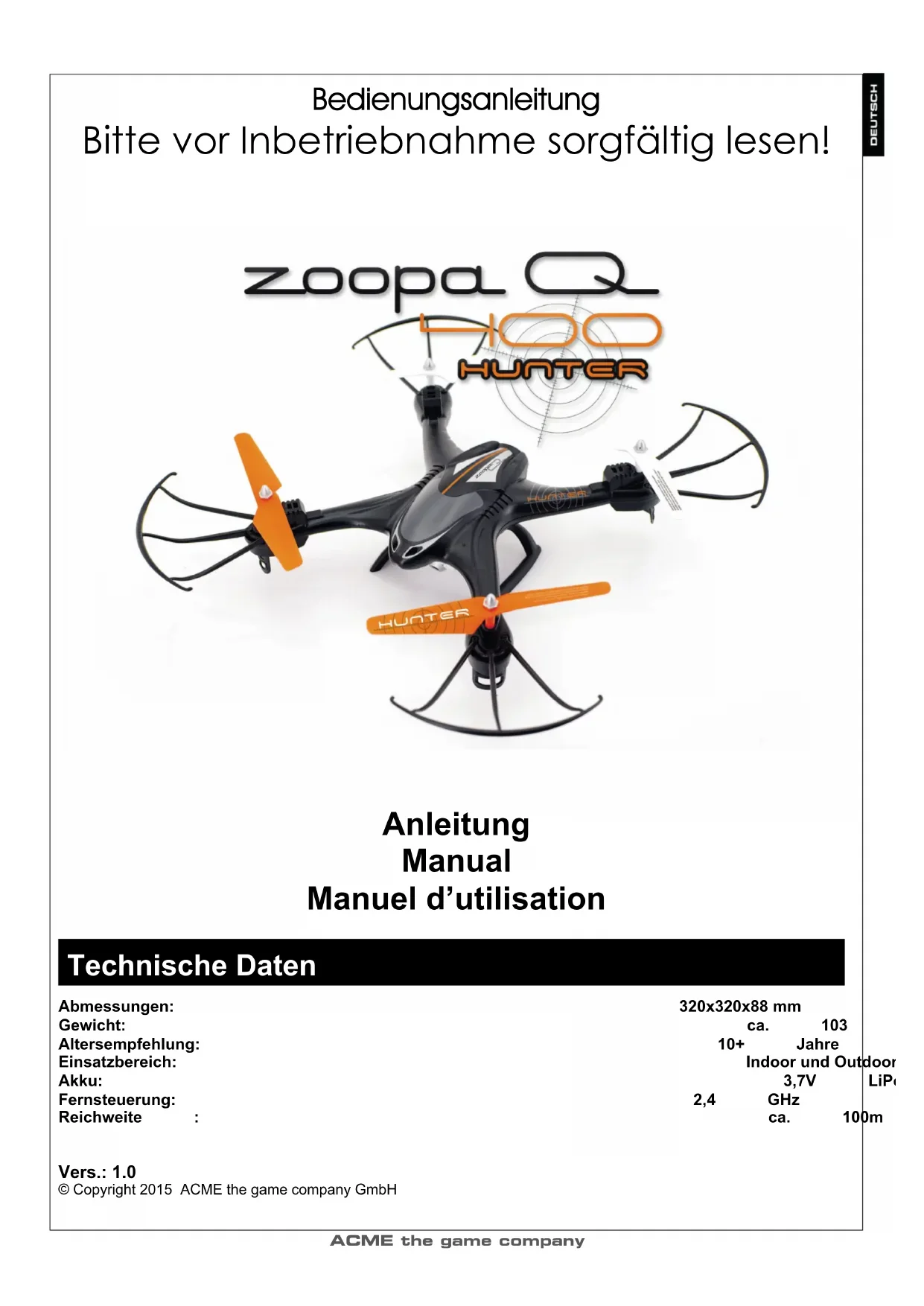 BEDIENUNGSANLEITUNG zoopa Q400 HUNTER Acme Made