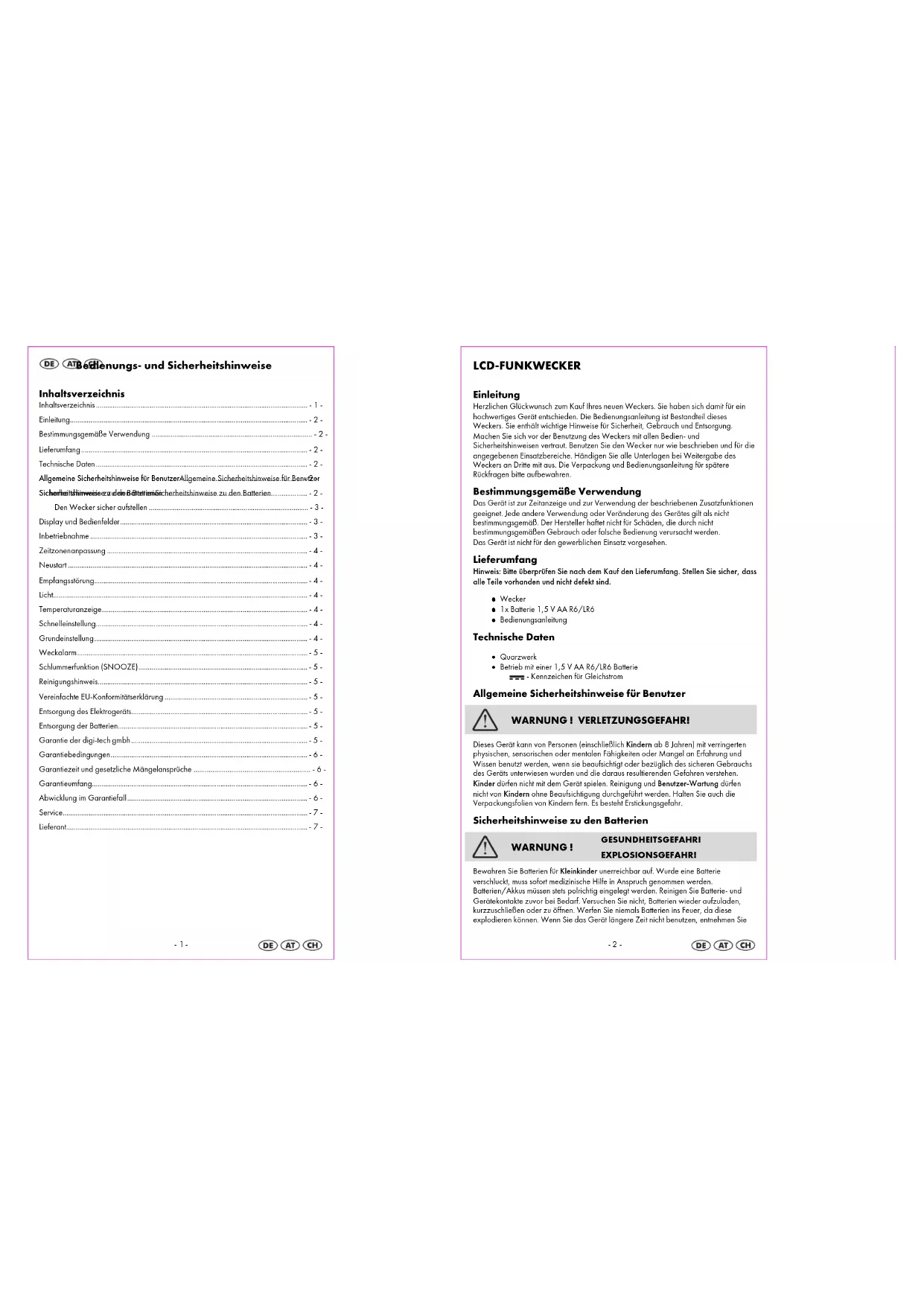 LCD-FUNKWECKER Bedienungs- und Sicherheitshinweise