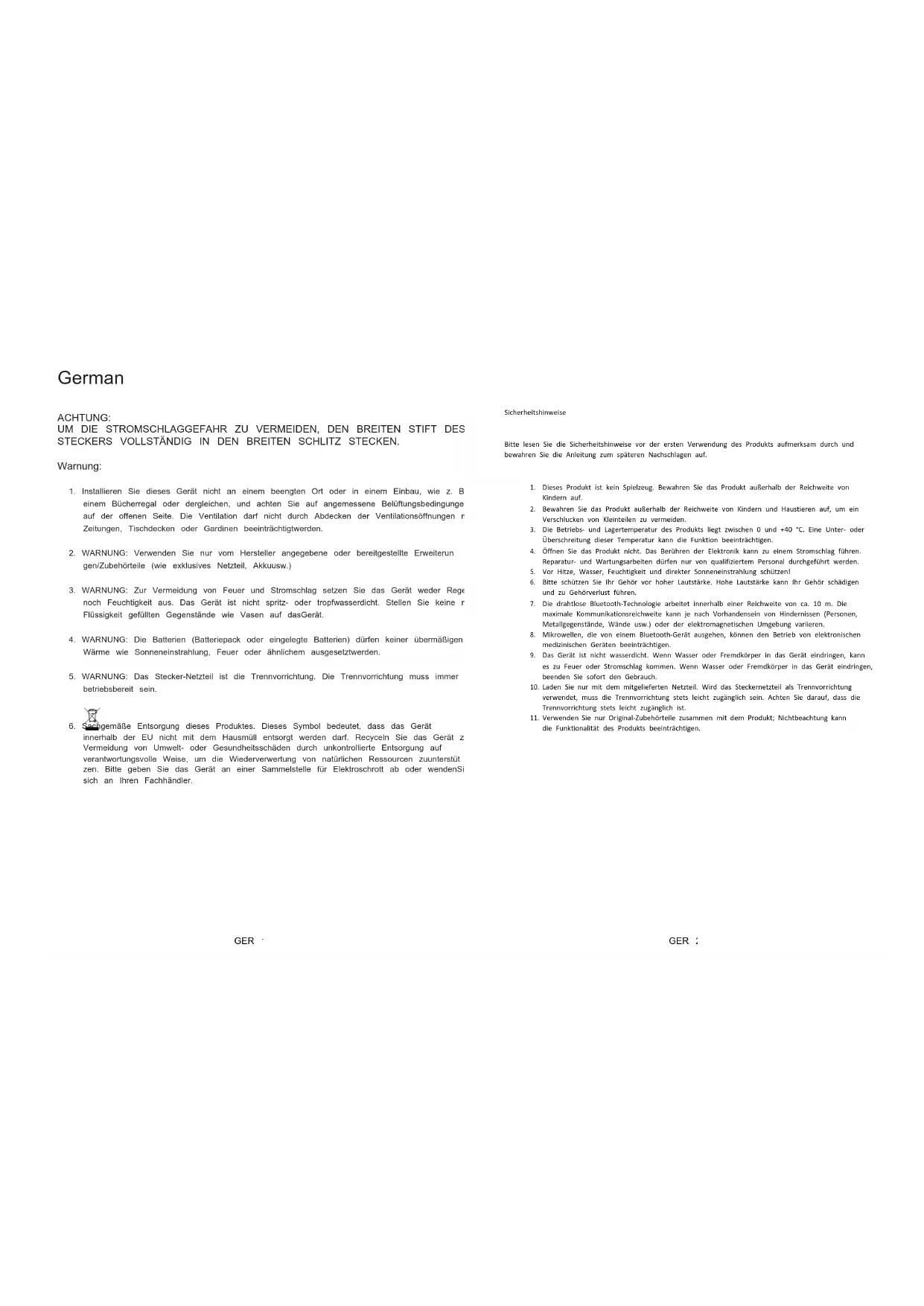 Verwenden Sie nur Original-Zubehörteile zusammen mit dem Produkt; Nichtbeachtung kann die Funktionalität des Produkts beeinträchtigen.GER 3 GER 4